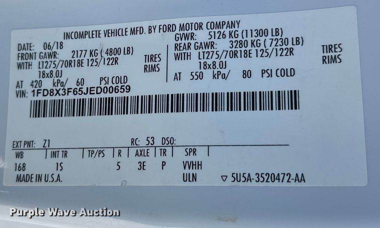 VIN: 1FD8X3F65JED00659