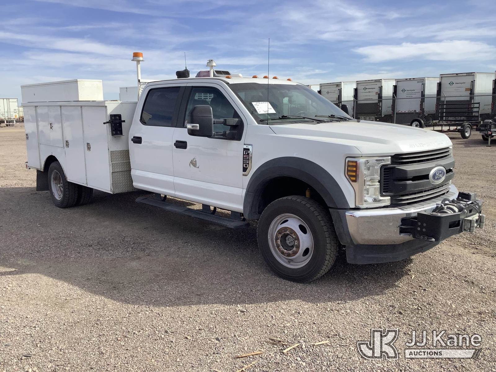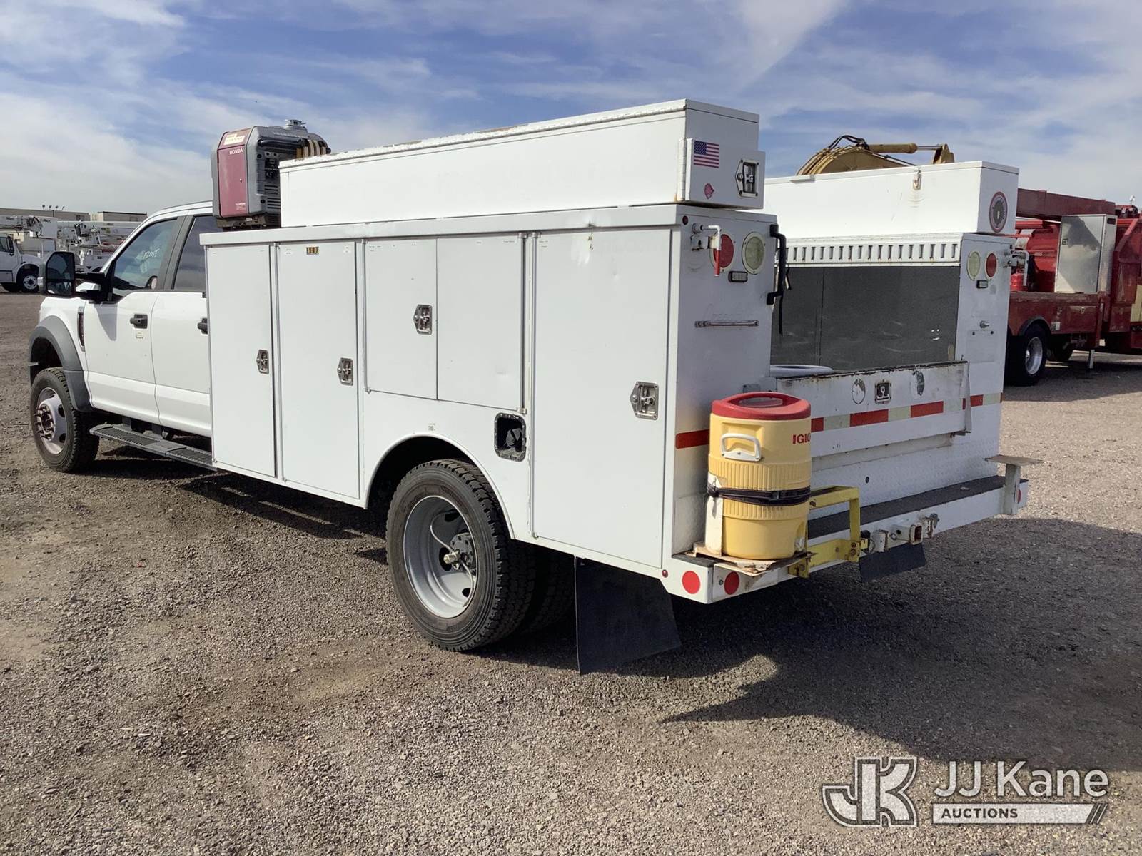 2018 Ford F550 4x4 Crew-Cab Service Truck, 10-cyl gas, Auto, A/C, with Honda generator, Knaack job box, front winch, (172,535 miles) (Runs & Moves) (Jump To Start, Check Engine Light On) This is a Titled Item NOTE: This unit is being sold AS IS/WHERE IS via Timed Auction and is located in Phoenix, AZ. For more information & removal arrangements please contact Andrew Espinoza @ (602) 336-3735. (Buyer is responsible for removal. Assistance by consignor or JJ Kane Auctioneers is not assured.)