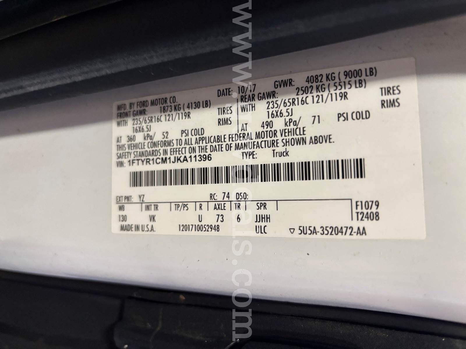 VIN: 1FTYR1CM1JKA11396