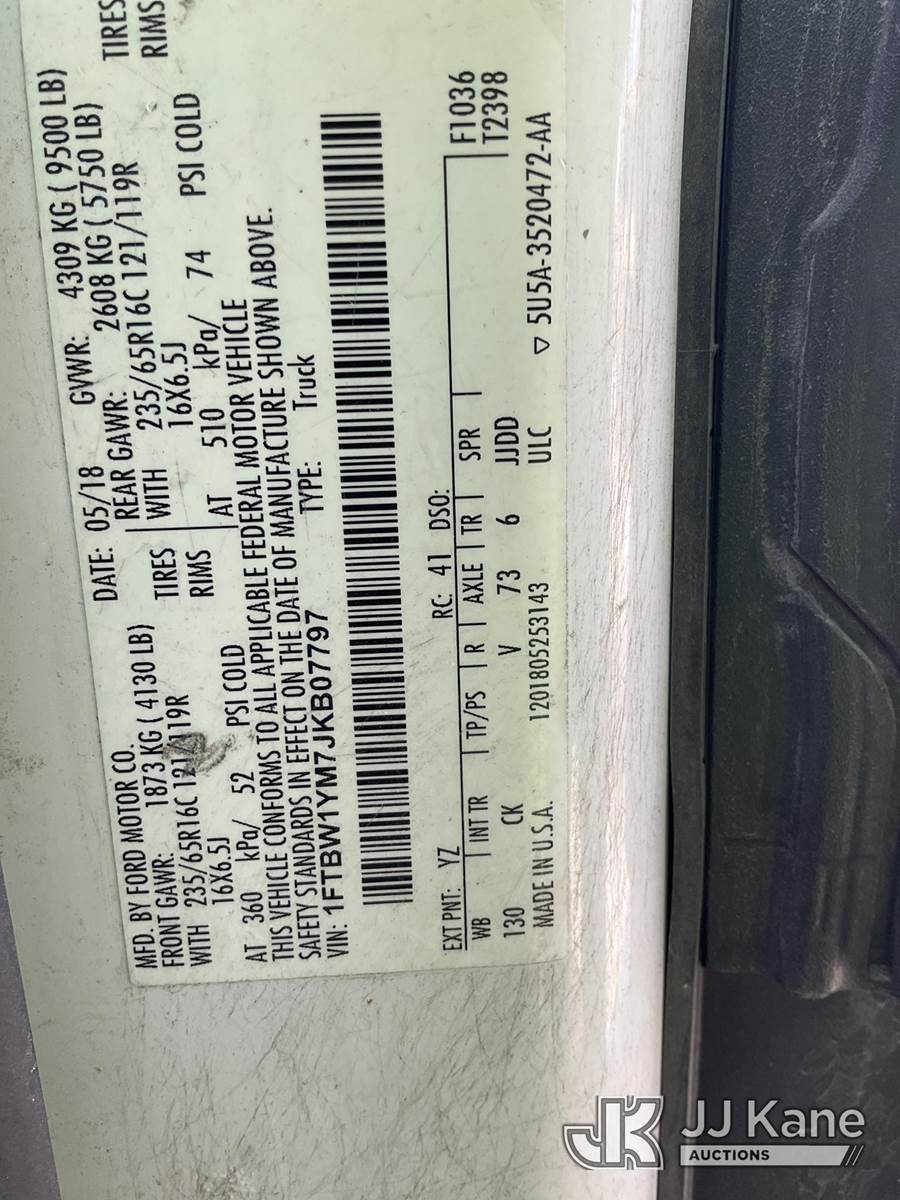 2018 Ford Transit 350 Van Low Roof Sliding Pass. 130-in. W Cargo Van, 3.7L V6 DOHC 24V gas, 6-Speed Automatic, RWD, A/C, (227,587 miles) (Runs & Moves) This is a Titled Item NOTE: This unit is being sold AS IS/WHERE IS via Timed Auction and is located in South Beloit, IL. Inspection & preview days for this unit are the 2 business days prior to the first day of items closing for this auction, item is located at 14354 Dearborn Ave South Beloit, IL and hours of operations are 8a-4p. For pre-sale questions, please contact Derek Eklund at (608) 904-0618 or (derek.eklund@jjkane.com). (Buyer is responsible for removal. Assistance by consignor or JJ Kane Auctions is not assured.)