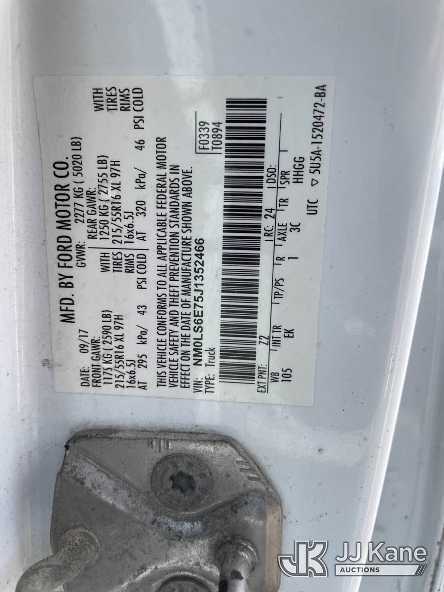 2018 Ford Transit Connect Mini Cargo Van, 4-cyl gas, 6-Speed Automatic, A/C, (46,202 miles) (Runs & Moves) (Jump to Start, Check Engine Light On) This is a Titled Item NOTE: This unit is being sold AS IS/WHERE IS via Timed Auction and is located in Riviera Beach, FL. For pre-sale questions or to schedule an inspection, please call Gregg Martini @ 561-519-5775. Removals require 24-hr Notice by Appointment Only, Buyer/Hauler must present copy of Paid-in-Full JJ Kane Release Form upon arrival. Purchaser acknowledges ALL lots must be removed within 10 business days of Auction, or a towing & storage fee may be incurred. (Buyer is responsible for removal. Assistance by consignor or JJ Kane Auctions is not assured.)