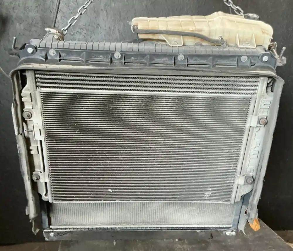 Cooling Assembly, Complete, Includes RAD, CAC, and Condenser, Radiator, P/N 05-37145-000, 1004285-AS, 35 5/8"H x 38 1/2"W, 2 1/2" Inlet - Upper Right, 2 1/2" Outlet - Lower Left, Oil Cooler - 12" Centers. Shroud Is Cracked.