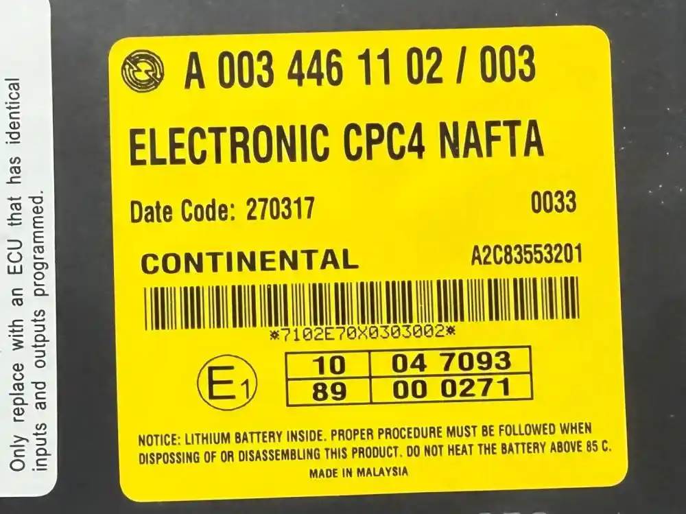 CPC4 GOOD USED CONTROL MODULE. REPLACEMENT AT TIME OF INSTALL/SALE. OR REPLACEMENT ONLY. NO TIME-WARRANTY COVERAGE PART#A0034461102/003