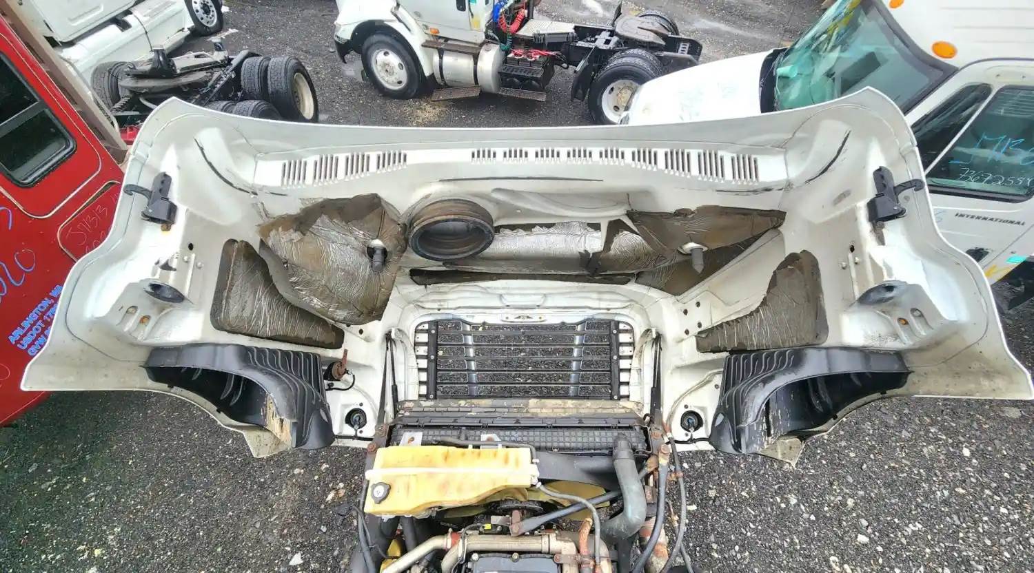 (Used) 2018 Freightliner Cascadia 125, HOOD ASSEMBLY- Length: 48" From Cowl to grille, Color: White, Material: Fiberglass, Reference images for condition, For more information about this item, give us a call. We ship Worldwide! (CRG HEAVY TRUCK PARTS) 929 W PULASKI HWY ELKTON, MD 21921, Length: 48", From Cowl to grille, Type: Manual