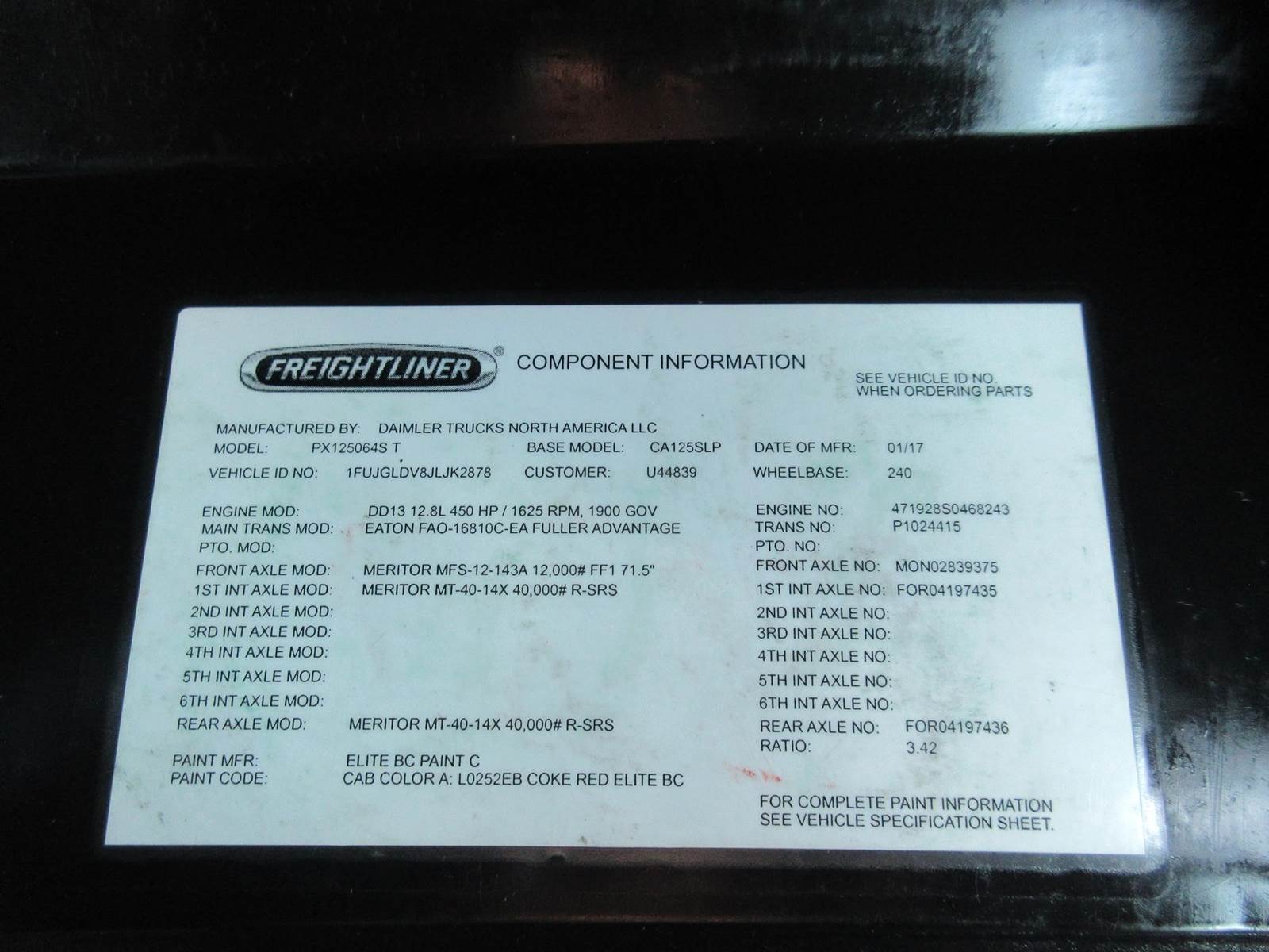 2018 FREIGHTLINER CASCADIA 125 MID ROOF. DD13 12.8L 450HP! 10 SPEED EATON FULLER AUTOMATIC! APU THERMO KING TRIPAC, CLEAN TRUCK READY TO WORK!