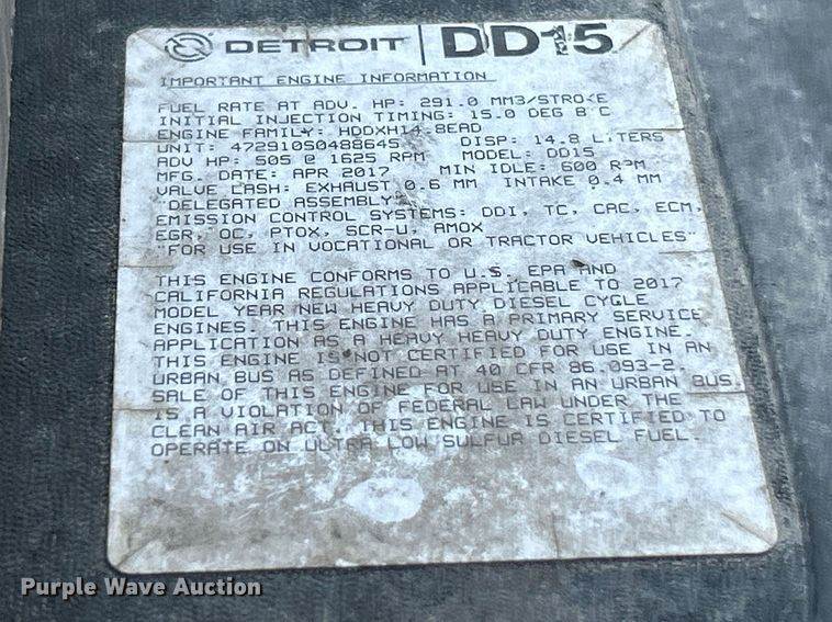 2015 Freightliner Cascadia semi truck, Miles: 905,861 on odometer, VIN: 3AKJGLD52FSGG8361, Unit #: 146, Engine, Detroit Diesel DD15 EV,...