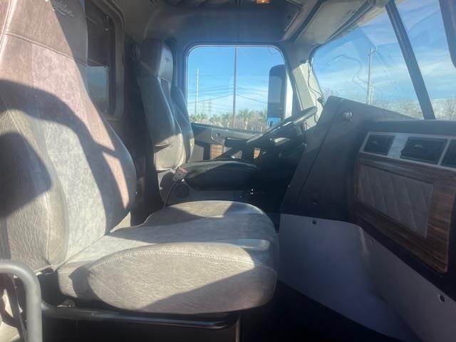 2018 FREIGHTLINER 122SD CORONADO TANDEM DUMP TRUCK, DD 15 450HP, ALLISON RDS 4500 AUTO, 544,250 MILES, AIR RIDE SUSPENSION, 12K FRONTS AND 40K REARS, AIR RIDE SUSPENSION, 210" WHEELBASE, 3.91 RATIO, TILT STEERING WHEEL, TANDEM AXLE ON ALUMINUM WHEELS AND 11R24.5 TIRES, VERTICAL SINGLE EXHAUST(SIDE OF CAB), 200 GALLON FUEL CAPACITY(90+110), DISC BRAKES, NEW 14' DUMP BODY, BLACK IN COLOR, SEMI ROUND DEMO, ALUMINUM ELECTGRIC TARP, AR 400 3/16 STEEL BODY W/ HI LIFT GATE.