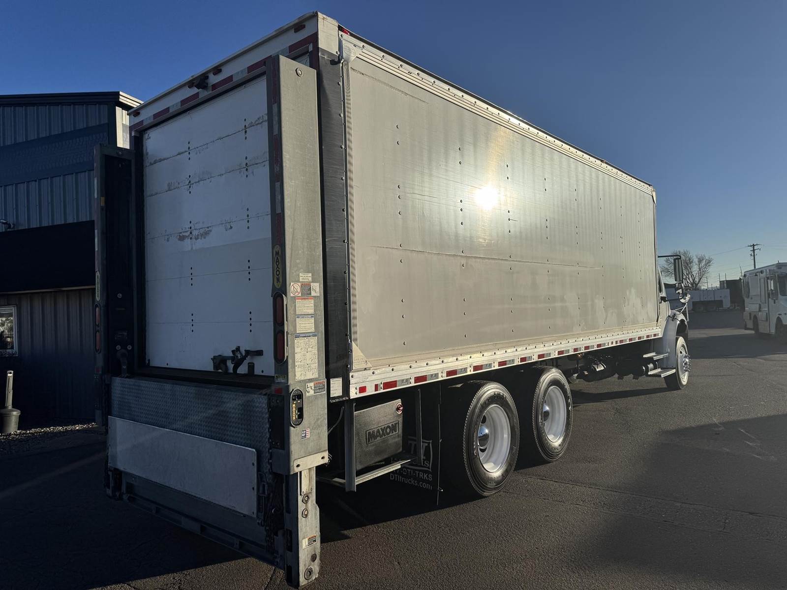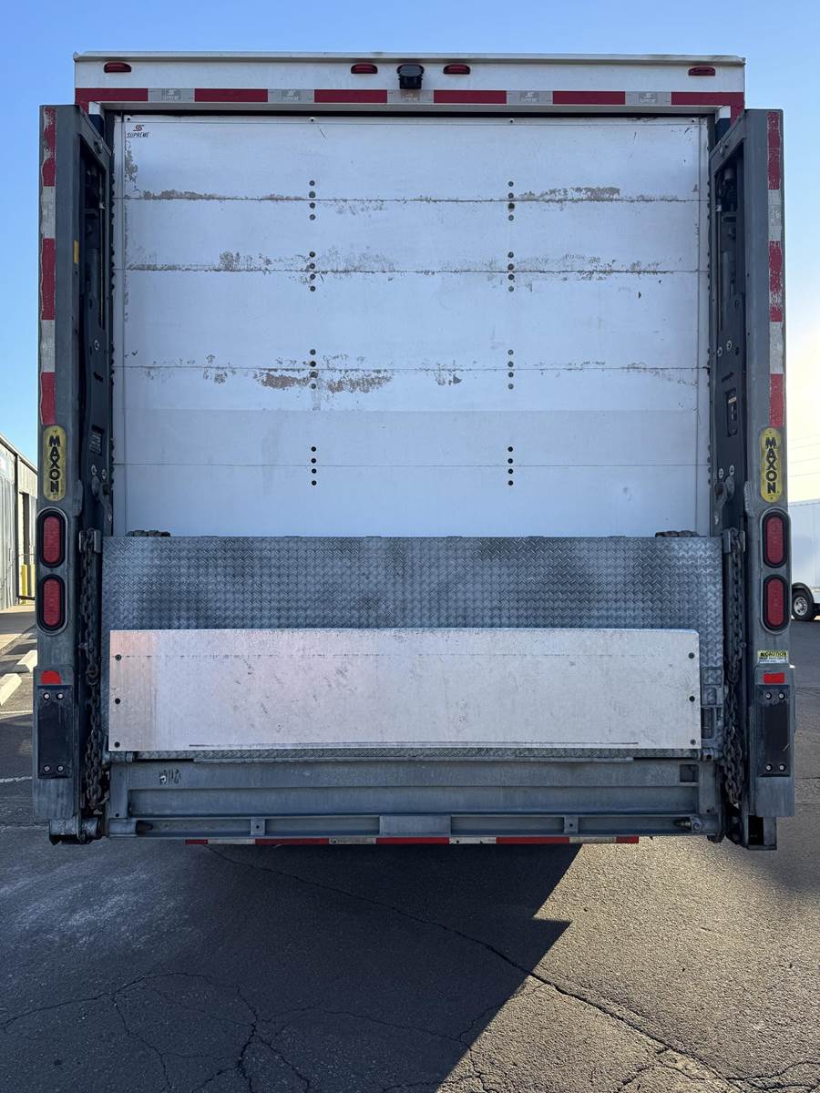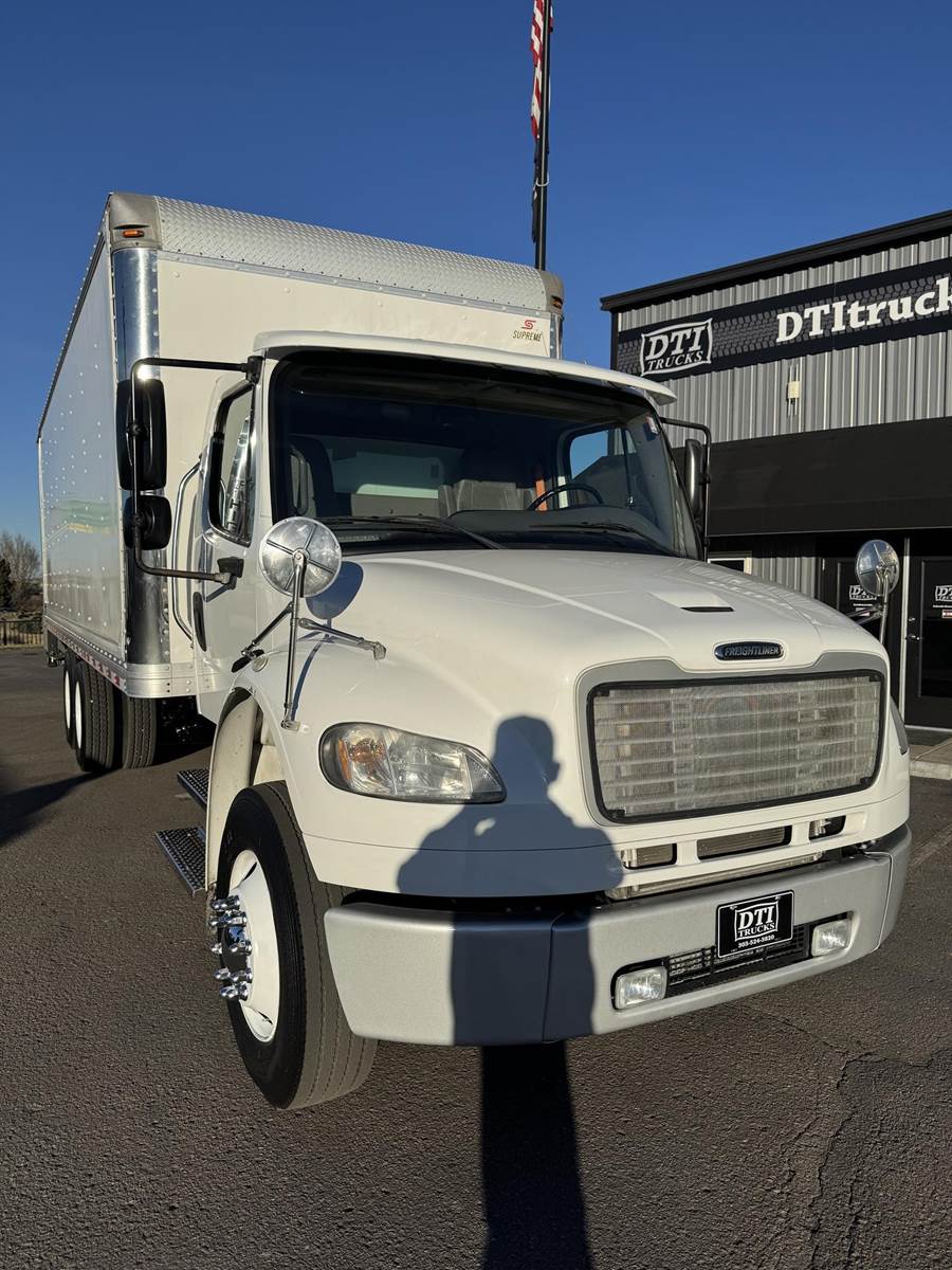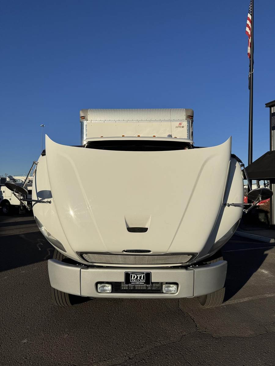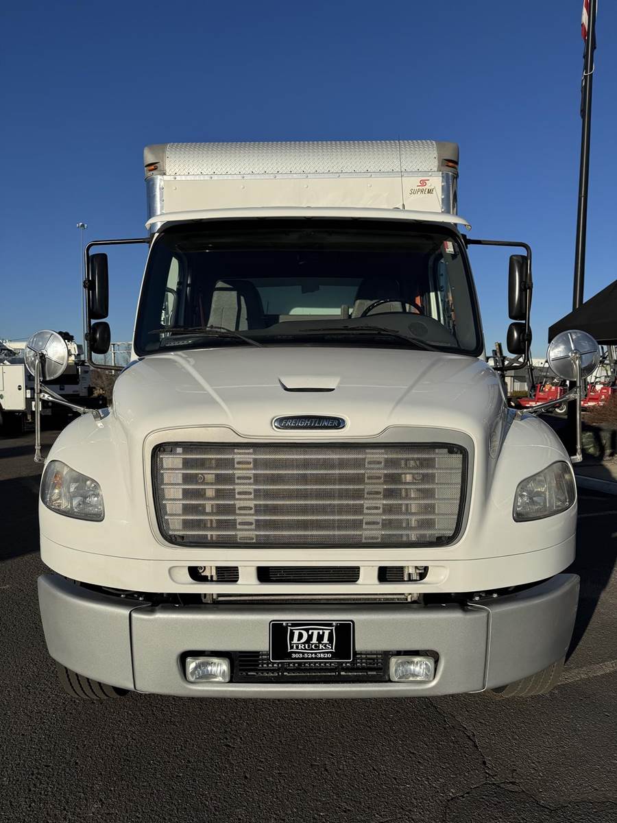 2018 Freightliner M2-106 Tandem Axle 24’ Box Truck, 8.9L Cummins L9 Diesel Engine, 350 HP, Exhaust Brake, Allison 3000 HS 6 Speed Automatic Transmission, 84,662 ECM Verified Miles, 4,998 ECM Verified Engine Hours, 52K GVWR, (12K Steer Axle, 40K Combined Drive Axles), 5.29 Ratio, FULL LOCKERS, 254” Wheel Base, 187” CTA, Air Ride Suspension With Dump Valve, 295/75R22.5 Tires Mounted On Steel Wheels, 80 Gallon Aluminum Diesel Fuel Tank, Air Brakes, Air Conditioning, Tilt & Telescopic Steering Wheel, Cruise Control, Bluetooth Radio, Air Ride Driver Seat, Supreme 24’ Dry Van Body,102” Wide, 91” Interior Height, 85” Door Opening Height, (4) Rows Of E-Tracking, Maxon Column Lift Rail Gate 5,500 Lbs. Capacity, 72”X 84” Platform. This Tandem Axle Freightliner Box Truck Is Available At DTI Trucks In Denver, CO. Stock#17870D. Call Or Text Brent For More Information (303) > 598 > 1923