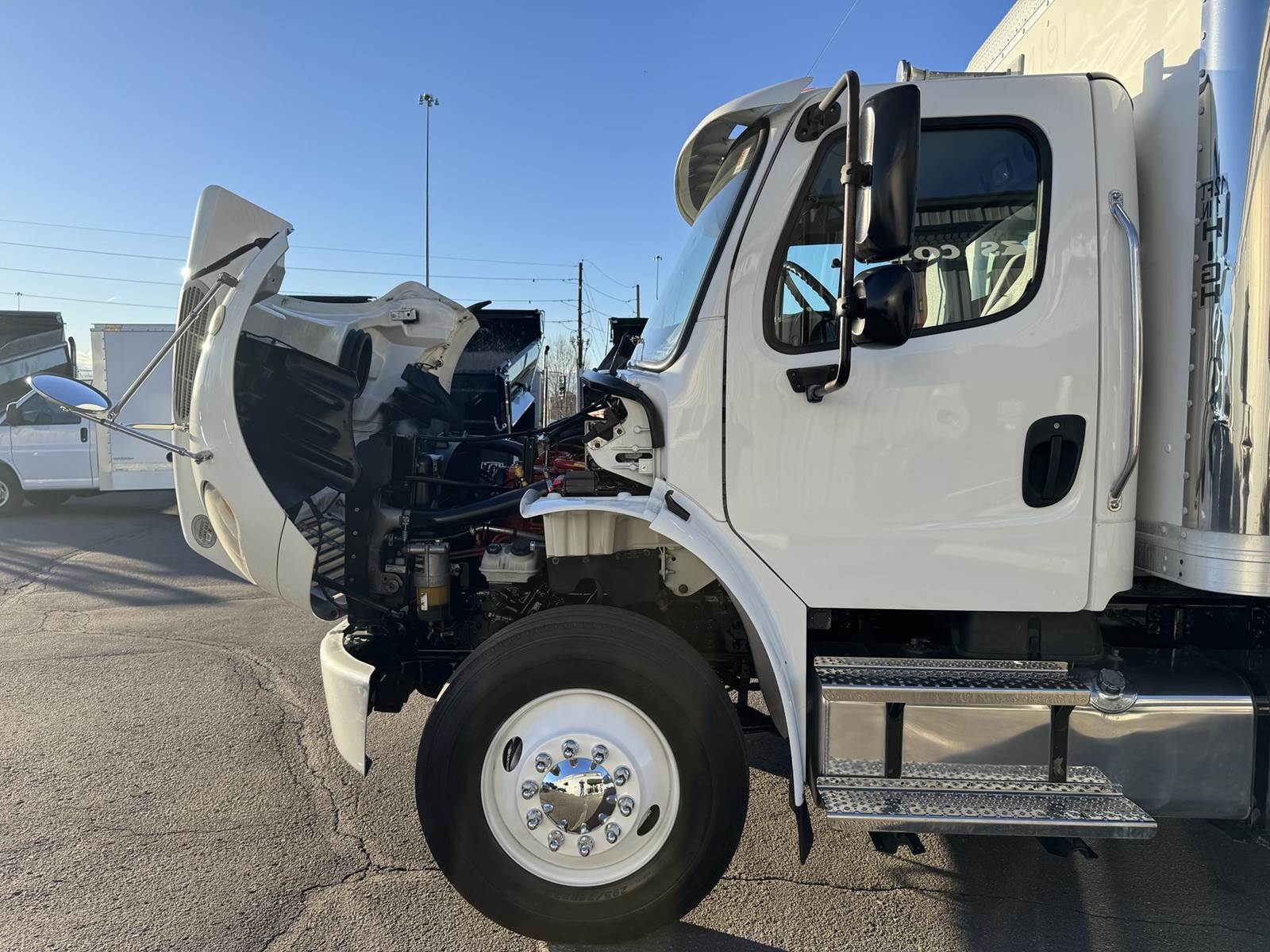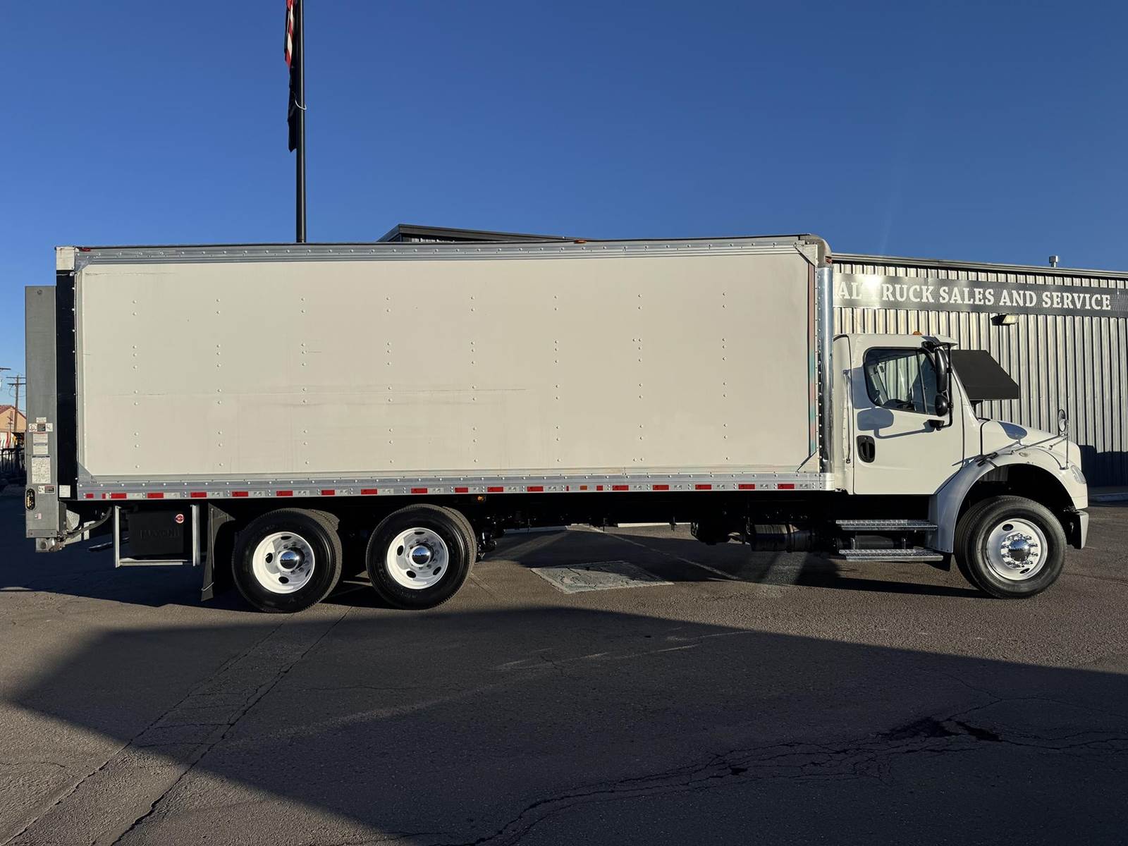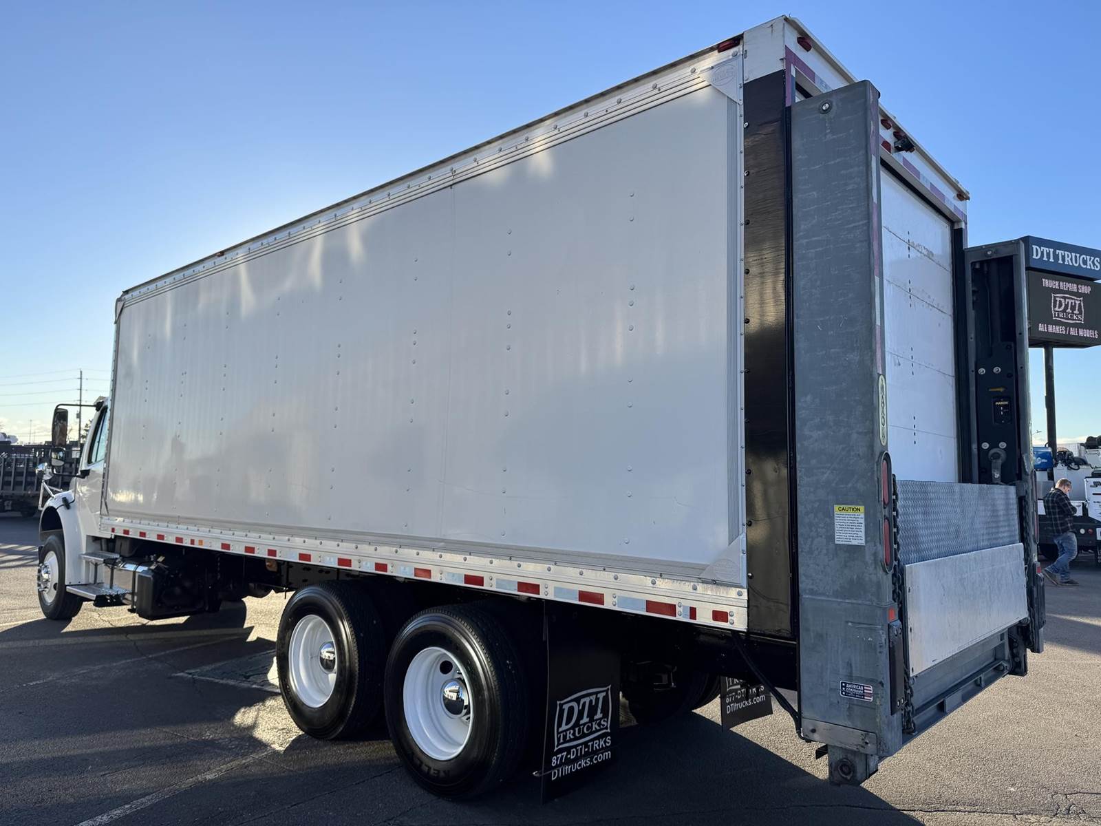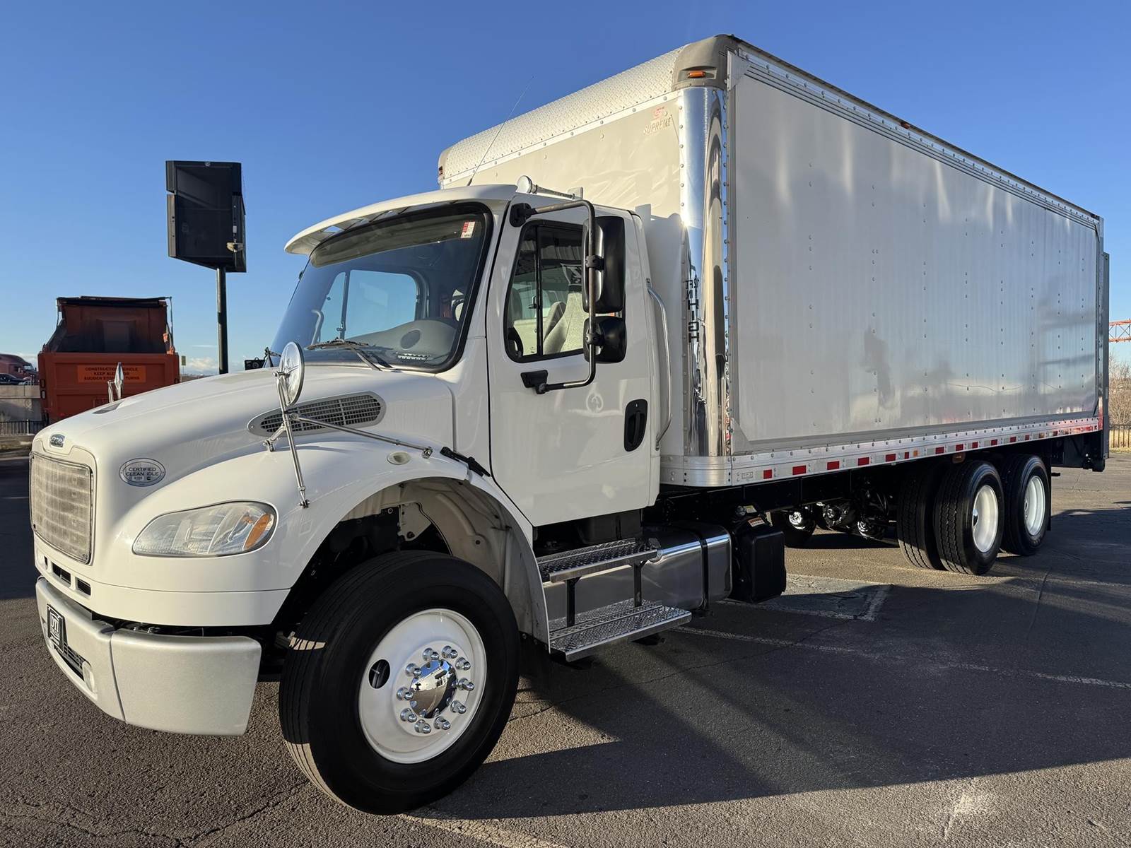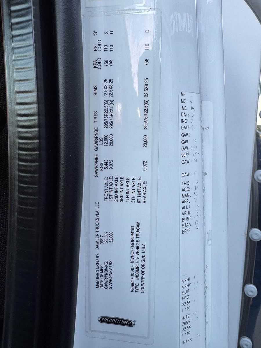 2018 Freightliner M2-106 Tandem Axle 24’ Box Truck, 8.9L Cummins L9 Diesel Engine, 350 HP, Exhaust Brake, Allison 3000 HS 6 Speed Automatic Transmission, 84,662 ECM Verified Miles, 4,998 ECM Verified Engine Hours, 52K GVWR, (12K Steer Axle, 40K Combined Drive Axles), 5.29 Ratio, FULL LOCKERS, 254” Wheel Base, 187” CTA, Air Ride Suspension With Dump Valve, 295/75R22.5 Tires Mounted On Steel Wheels, 80 Gallon Aluminum Diesel Fuel Tank, Air Brakes, Air Conditioning, Tilt & Telescopic Steering Wheel, Cruise Control, Bluetooth Radio, Air Ride Driver Seat, Supreme 24’ Dry Van Body,102” Wide, 91” Interior Height, 85” Door Opening Height, (4) Rows Of E-Tracking, Maxon Column Lift Rail Gate 5,500 Lbs. Capacity, 72”X 84” Platform. This Tandem Axle Freightliner Box Truck Is Available At DTI Trucks In Denver, CO. Stock#17870D. Call Or Text Brent For More Information (303) > 598 > 1923