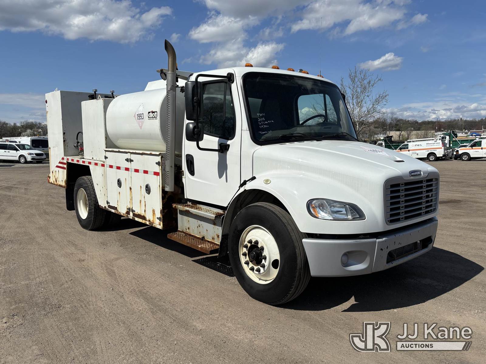 2018 Freightliner M2 106 Fuel/Lube Truck, Cummins ISB 6.7L Diesel Auto, A/C, with Fuel Tank, 4) Oil Tanks, 2) Fuel Hose Reels, 1) Grease Hose Reel, 4) Oil Hose Reels, & 1) Air Hose Reel, (119,316 miles) (Danella Unit) (Runs & Moves, Rust On Body, Check Engine Light On) This is a Titled Item NOTE: This unit is being sold AS IS/WHERE IS via Timed Auction and is located in Plymouth Meeting, PA. Inspection & preview days for this unit are the 2 business days prior to the first day of items closing for this auction, item is located at 1402 Conshohocken Rd Plymouth Meeting, PA 19462 and hours of operations are 8a-4p. For pre-sale questions, please contact Bruce Thomas @ (267) 887-0392 or bruce.thomas.jr@jjkane.com. (Buyer is responsible for removal. Assistance by consignor or JJ Kane Auctions is not assured.)