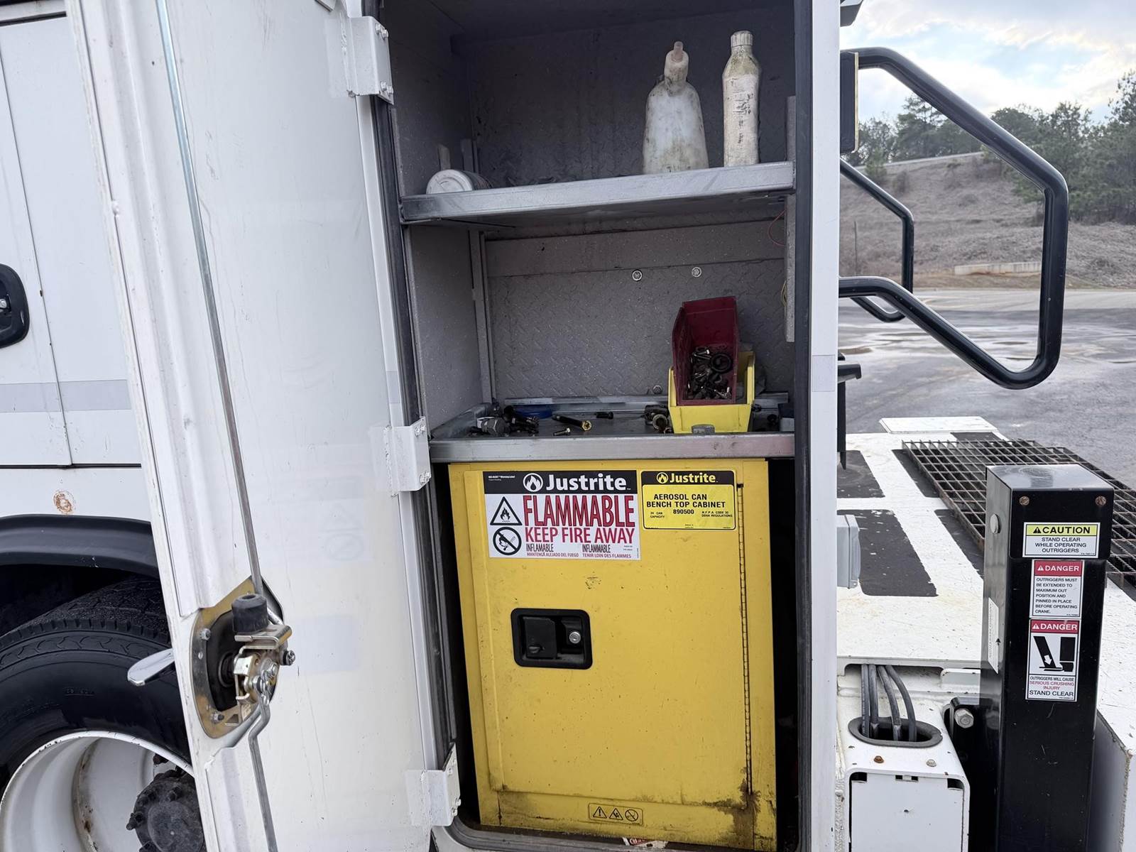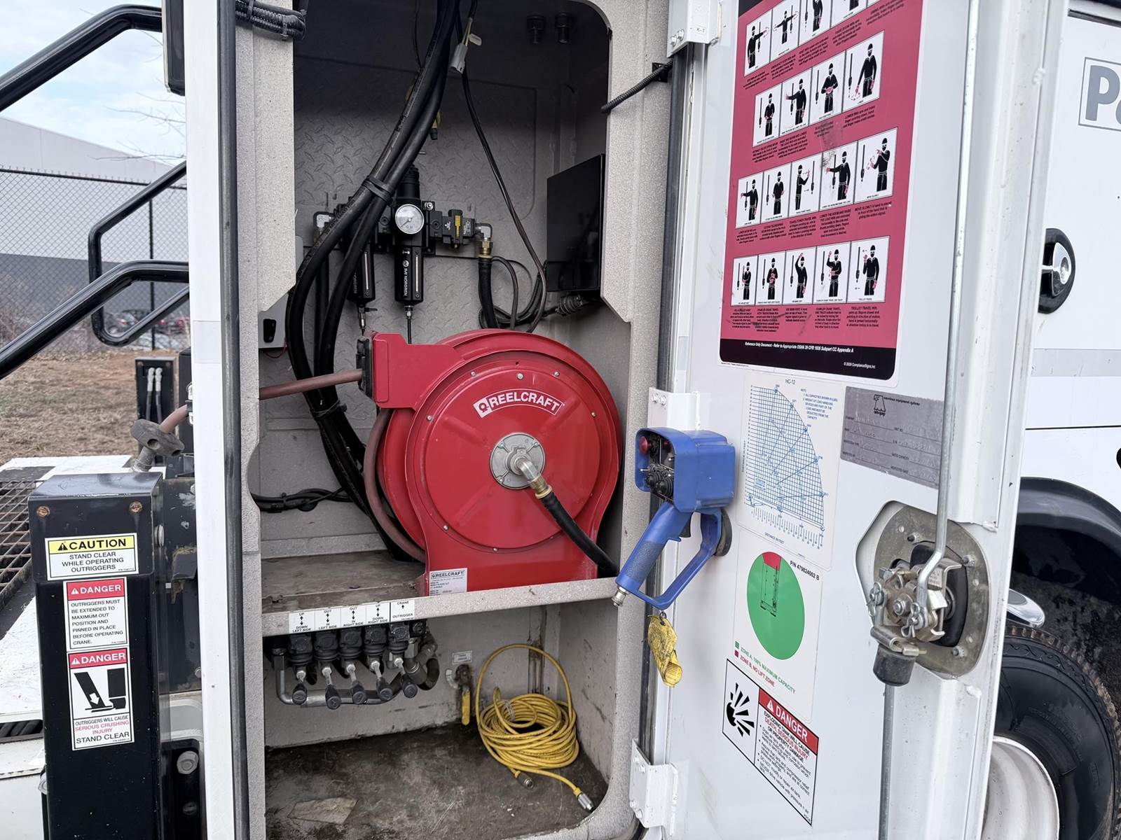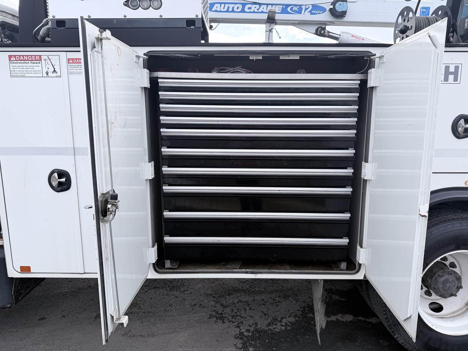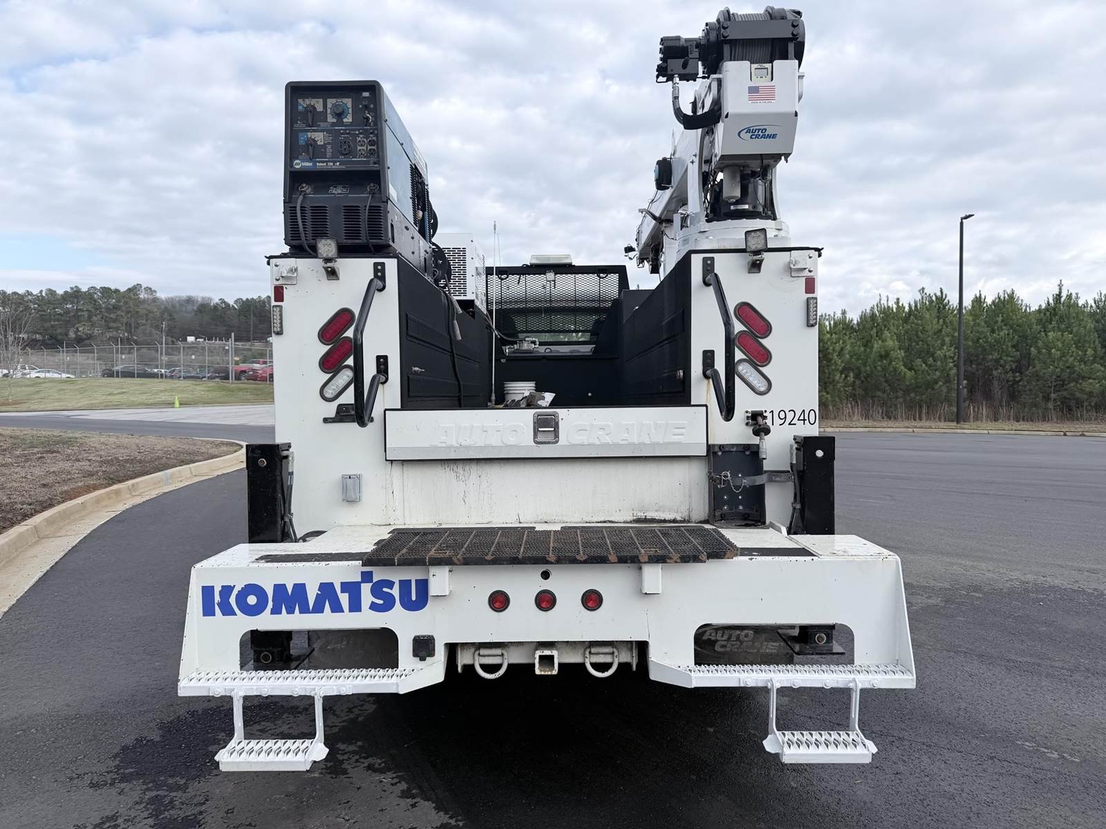 240HP Cummins diesel, Allison automatic transmission, Auto Crane HC12 12,000lb capacity w/ wireless remote, Bobcat 225 NT welder generator 20HP 225 amps 8500 watt generator, Vanair RS85 air compressor w/ 318 hours, We ship nationwide