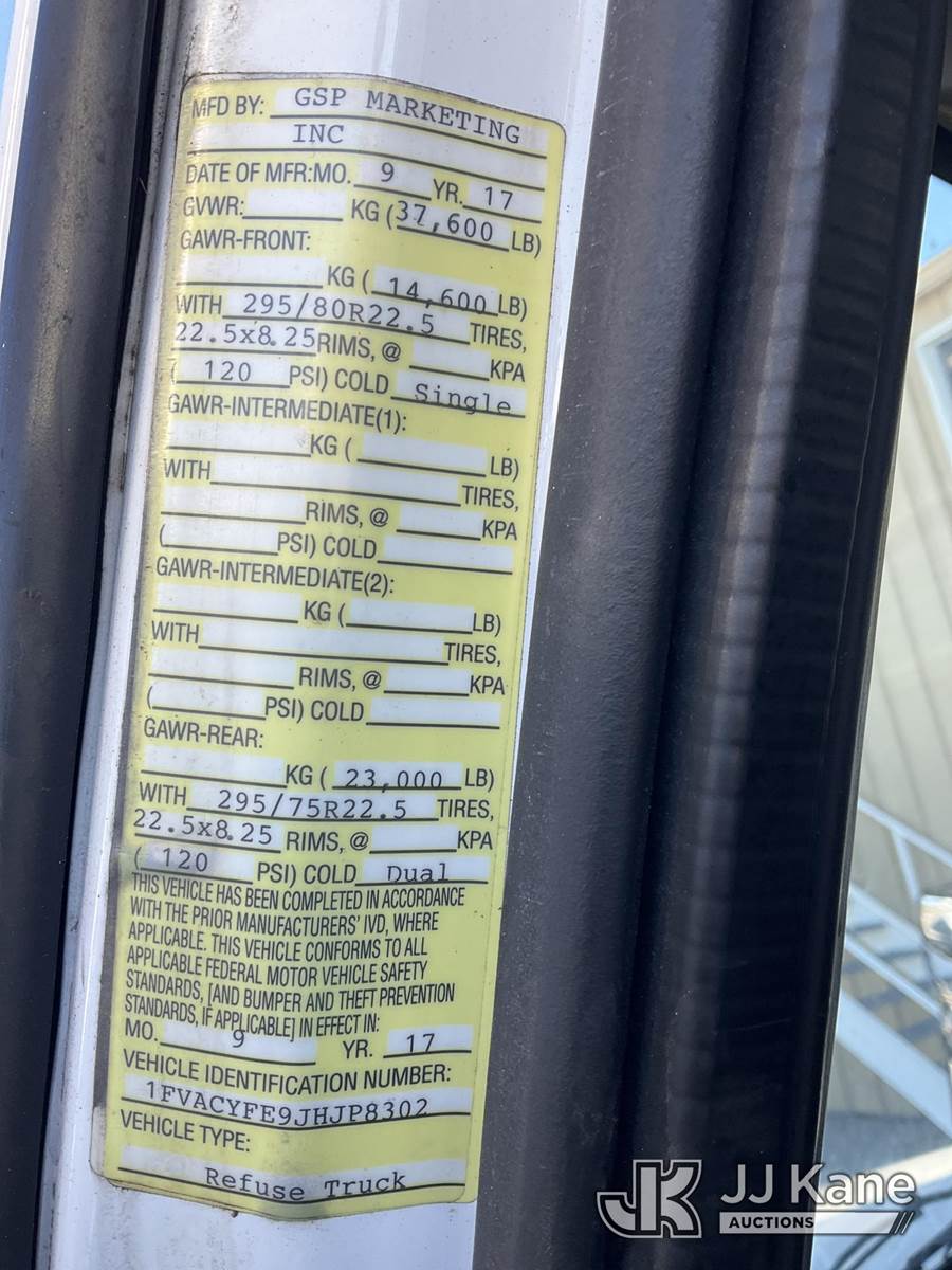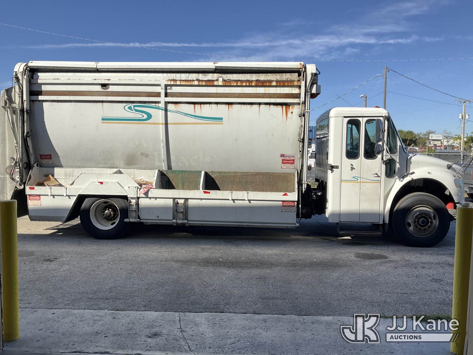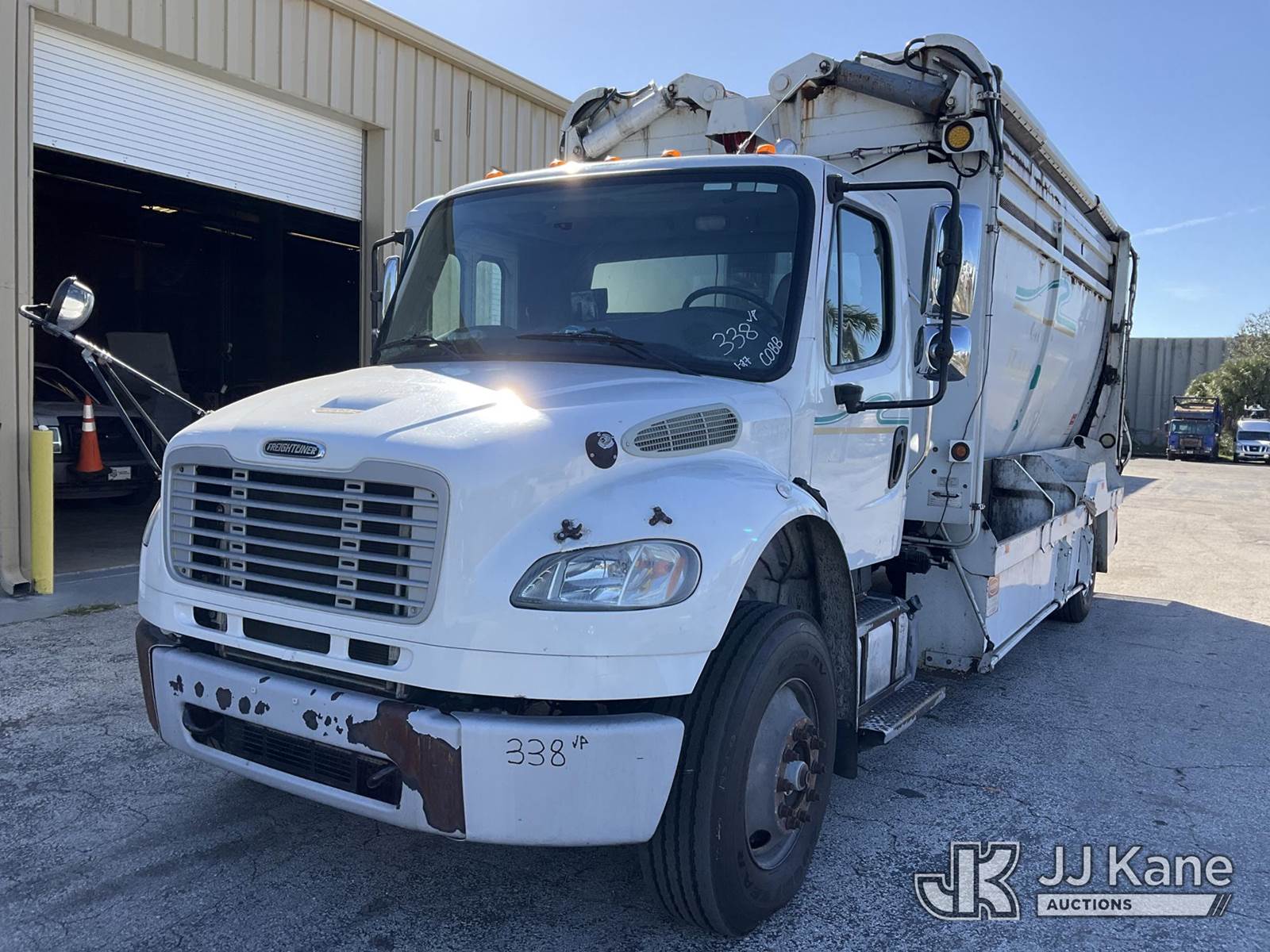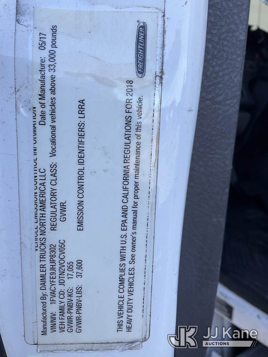 2018 Freightliner M2 Recycling Truck, Cummins L9 9.0L L6 diesel, Auto, A/C, (63,627 miles) (Runs & Moves, Check Engine Light On, Paint & Body Damage, Body & Bumper Rust, Driver Side Front Blind Spot Mirror Missing) (FL Residents Purchasing Titled Items - tax, title & registration fees will be collected at the maximum rate of $400.00 under 25,999 and $800.00 for Over 26,000 and $250.00 trailers - Proof of insurance is mandatory; Out of State Residents Purchasing Title Items - tax will be collected based upon your state rate.) (Reads 10,806 hours) This is a Titled Item NOTE: This unit is being sold AS IS/WHERE IS via Timed Auction and is located in West Palm Beach, FL. For Pick Up & Removal information, please contact: Andy Garcia @ 561-215-0085. Removals require 24-hr Notice by Appointment Only, Buyer/Hauler must present copy of Paid-in-Full JJ Kane Release Form upon arrival. Purchaser acknowledges ALL lots must be removed within 10 business days of Auction, or a towing & storage fee may be incurred. (Buyer is responsible for removal. Assistance by consignor or JJ Kane Auctions is not assured.)