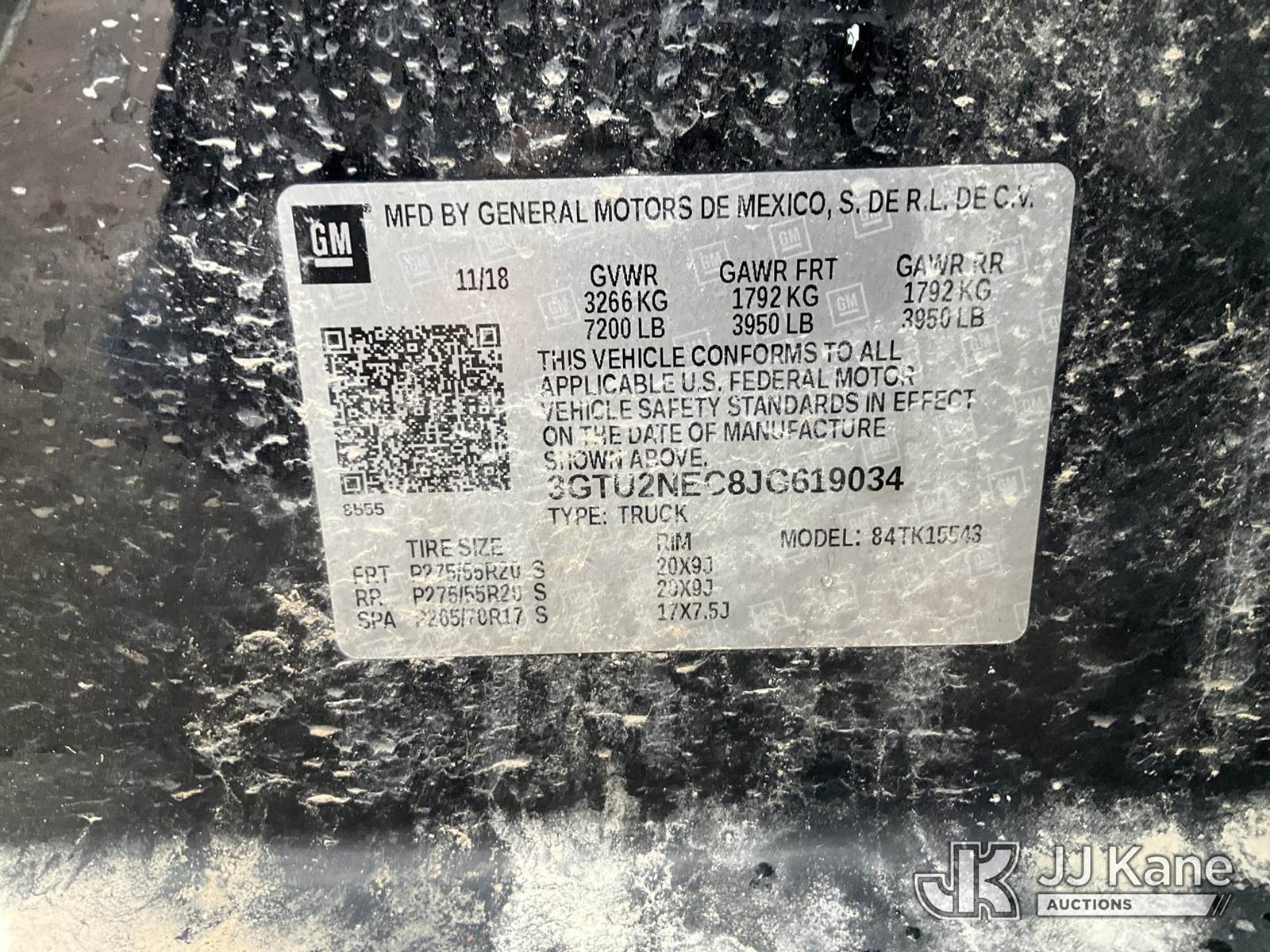 2018 GMC Sierra 1500 Z71 4x4 Crew-Cab Pickup Truck, 5.3L V8 OHV 16V gas, Auto, A/C, with bed cover, (140,168 miles) (Runs & Moves (Rough Idle, Jump to Start, Check Engine Light)) This is a Titled Item NOTE: This unit is being sold AS IS/WHERE IS via Timed Auction and is located in Des Moines, IA. Inspection & preview days for this unit are the 2 business days prior to the first day of items closing for this auction, item is located at 1600 NE 66th Ave Des Moines, IA 50313 and hours of operations are 8a-4p. For pre-sale questions, please contact Eric Stewart @ (515) 626-0492. (Buyer is responsible for removal. Assistance by consignor or JJ Kane Auctioneers is not assured.)