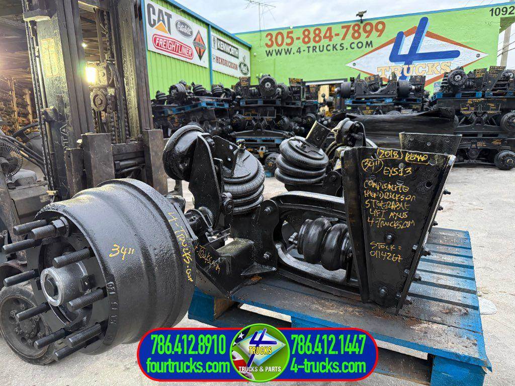 REMANUFACTURED 2018 EXS13 COMPOSILITE STEERABLE LIFT AXLE, AIR UP AIR DOWN, 34” FRAME WIDTH, PILOT METRIC HUBS, COMPLETE READY TO WORK, ALSO MANY LIFT AXLES IN STOCK