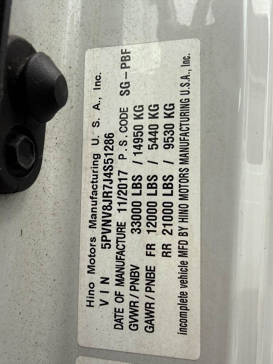 2017 Hino 338 24 ft Refrigerated Truck - 220HP, Automatic, Carrier