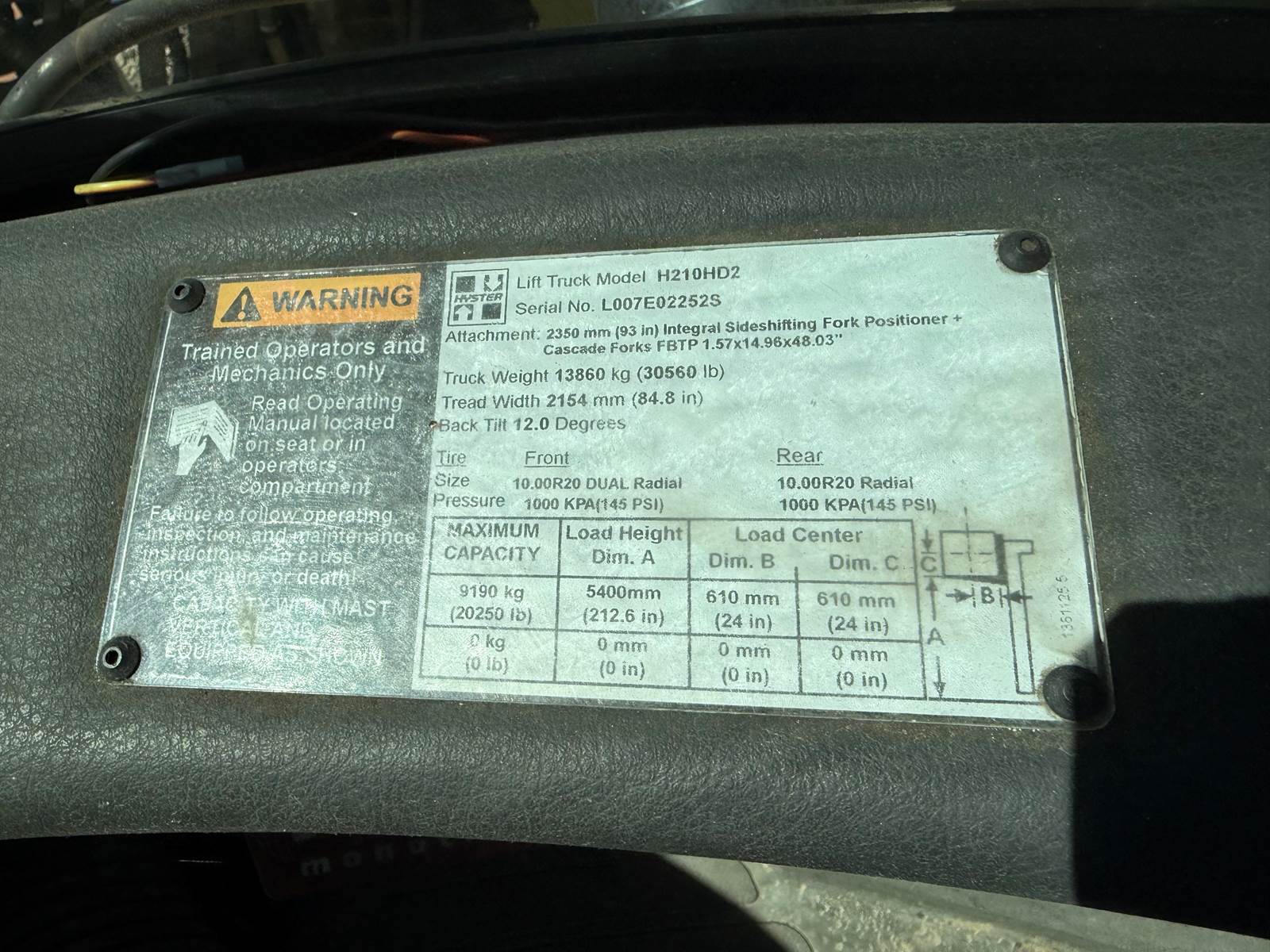2018 Hyster H210HD2 Pneumatic Tire Forklift