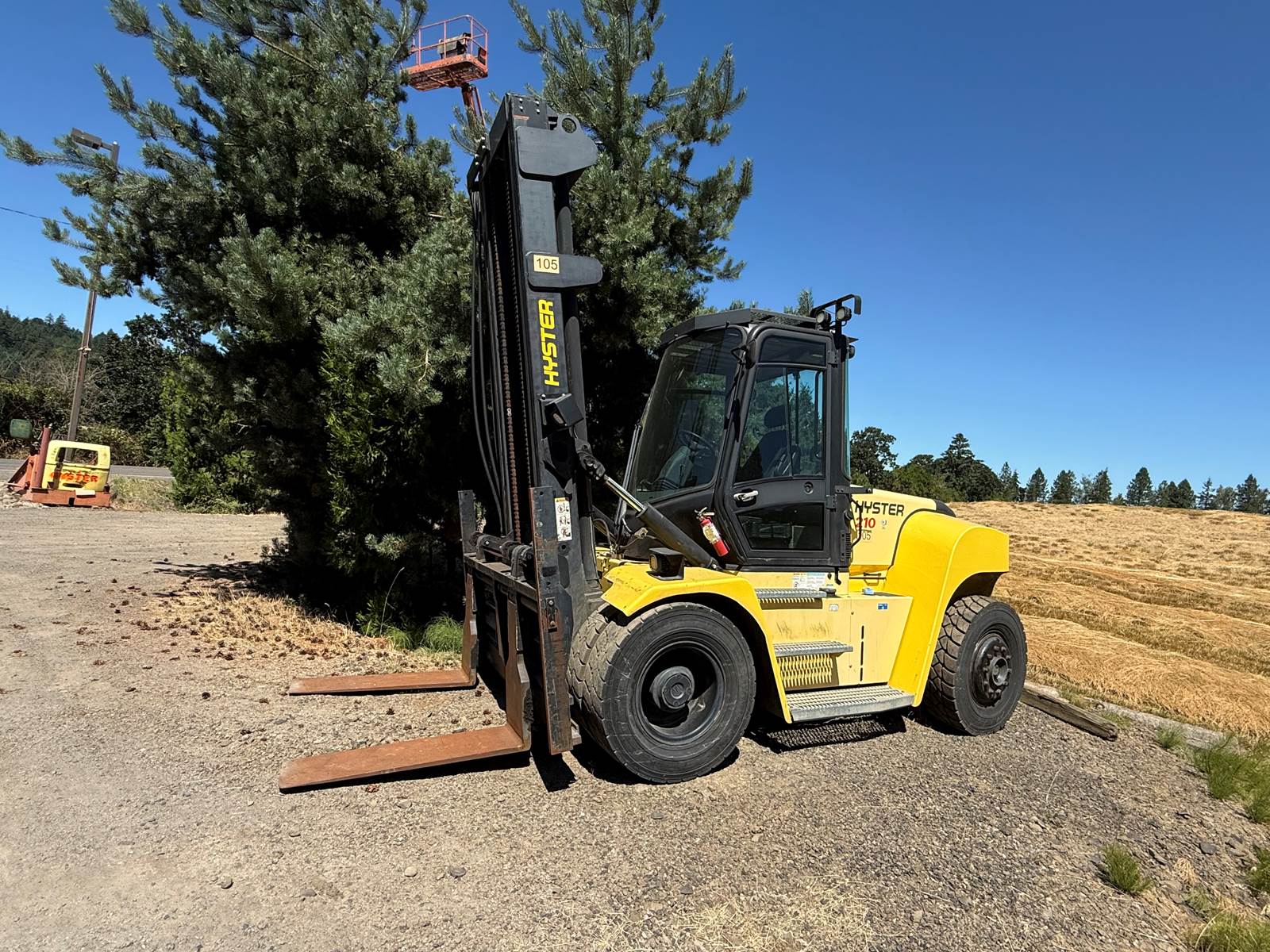 2018 Hyster 210 Forklift with enclosed cab and heat/ac. 20k lift capacity, 3 stage mast, DEF machine. Very clean inside and outside.