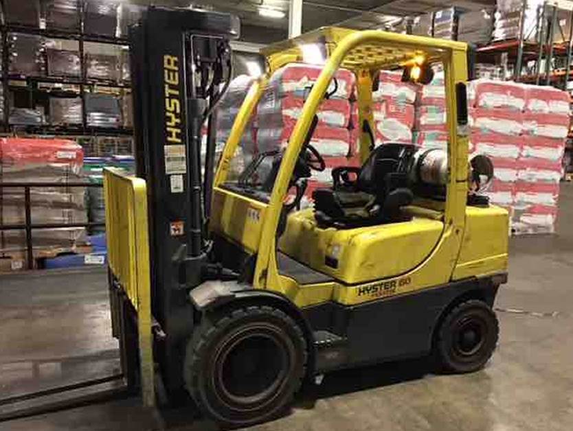2018 Hyster H60FT ,s/n: P177V10290S, 83/240" quad 4 stage mast, sideshifting fork positioner, 42" forks, lease return, levershift auto, 6000lb cap, pneumatic tires, lpg, sdp, 10238hm.