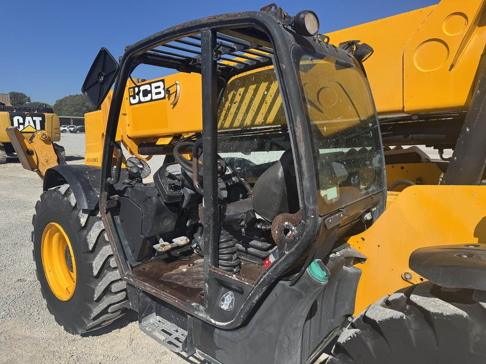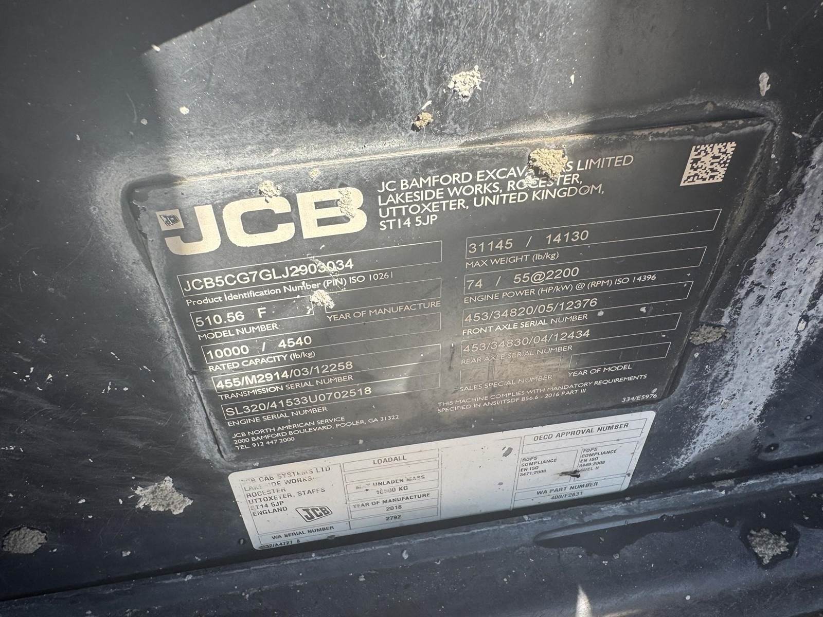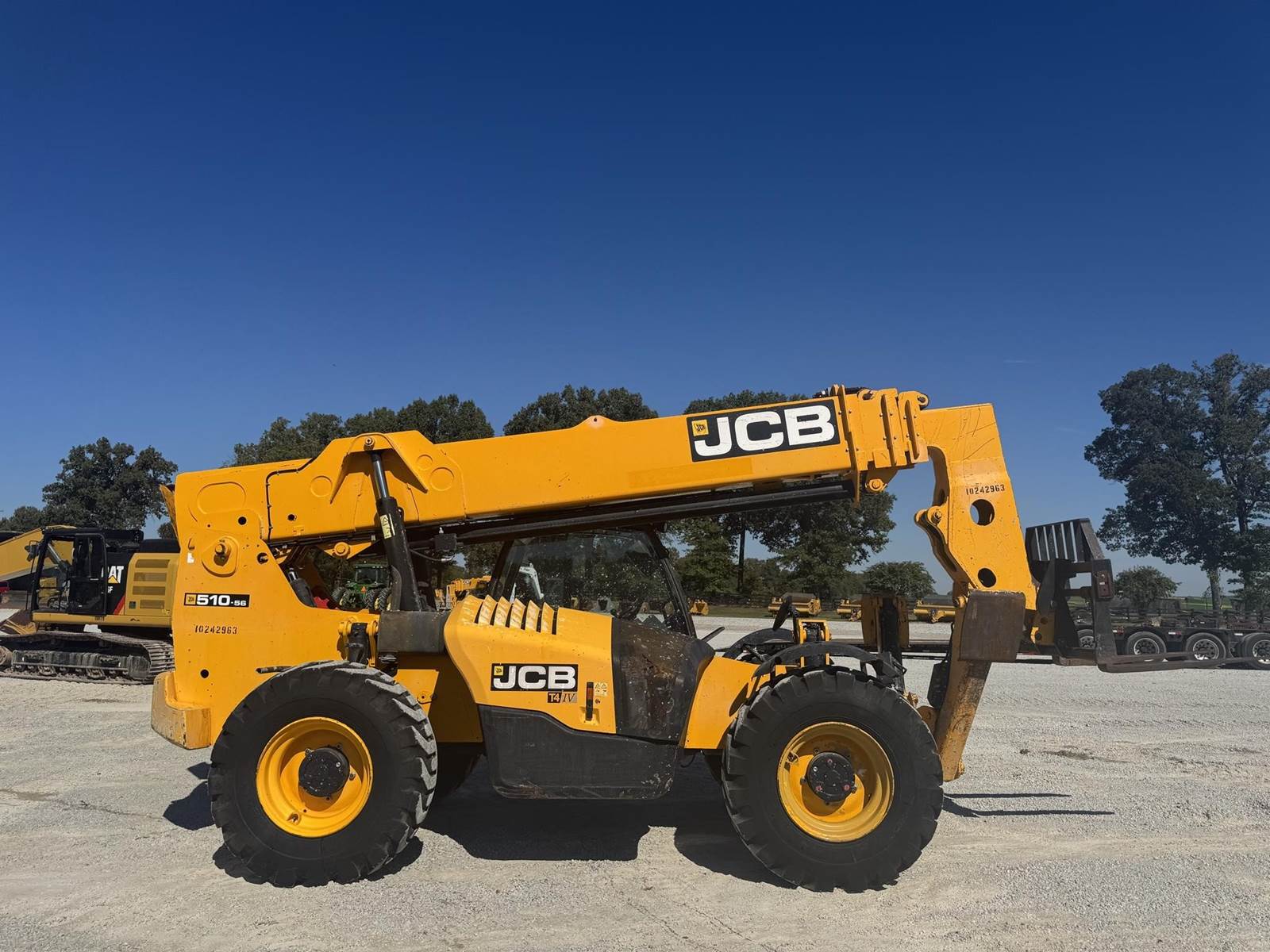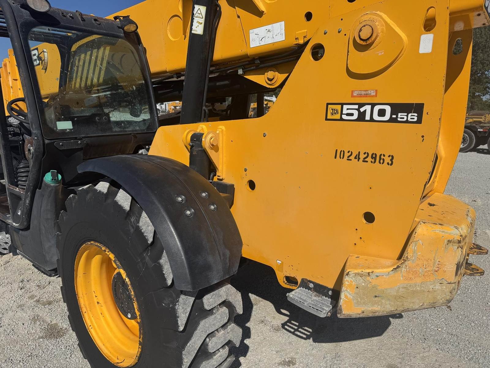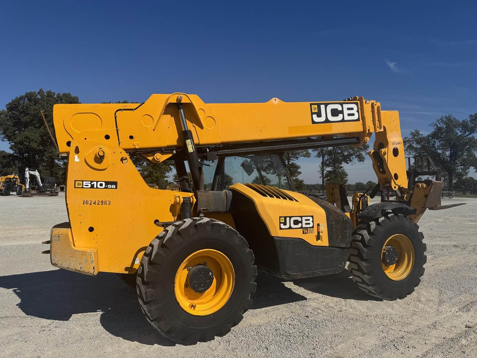 2018 JCB 510-56, 10,000 LBS LIFT CAPACITY, 56 FT MAX REACH, 4700 HOURS, OUTRIGGERS, FRONT AUXILIARY HYDRAULICS, OPEN CAB, 4 SPD TRANSMISSION, 3 WAY STEERING, JOYSTICK CONTROLS, CAB LEVELING
