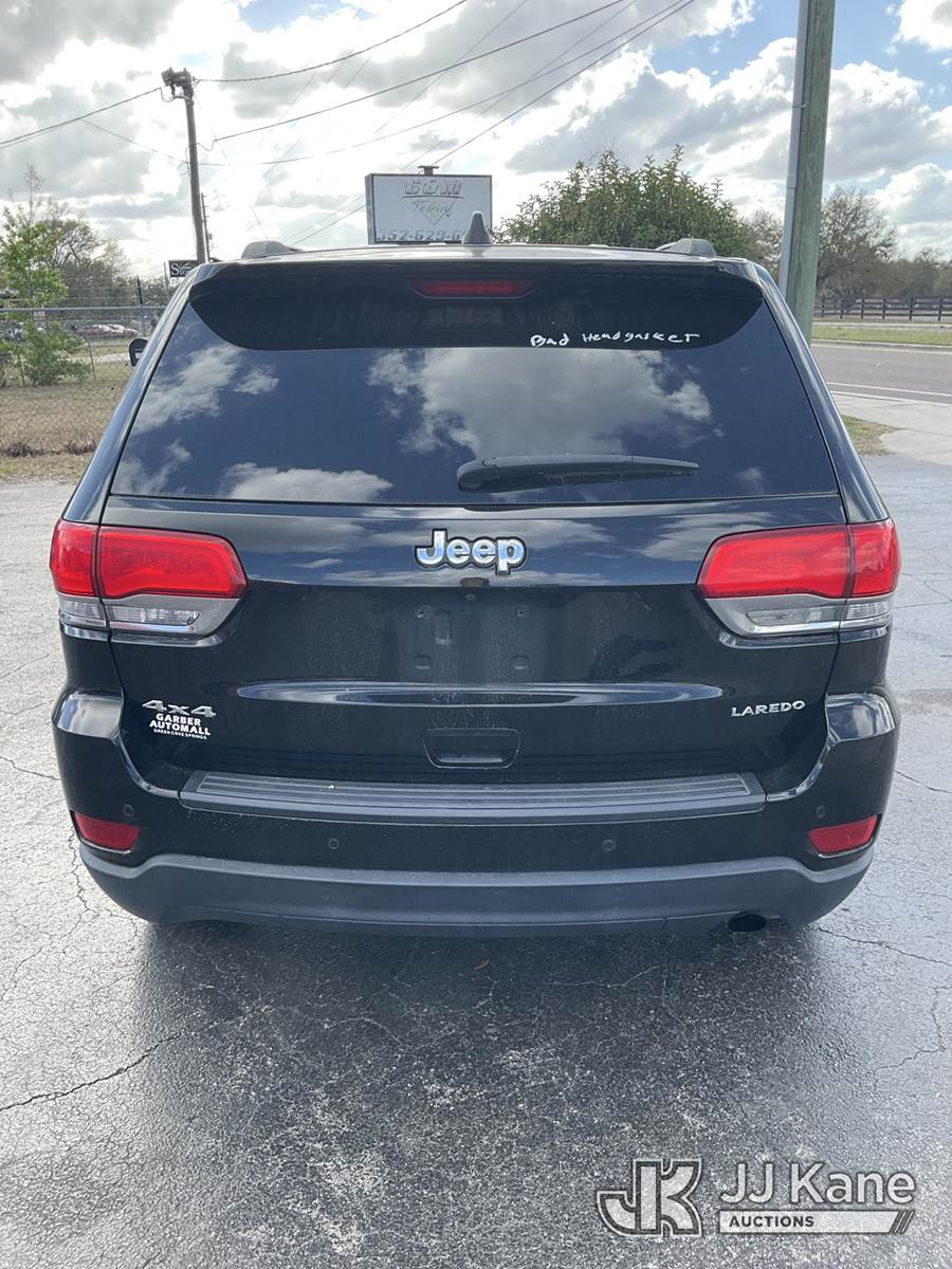2018 Jeep Grand Cherokee Laredo 4WD 4-Door Sport Utility Vehicle, 3.6L V6 DOHC 24V gas, 8-Speed Automatic, A/C, (117,638 miles) Former Police Vehicle (Runs & Moves) (Check Engine Light On, Body/Paint Damage) (Seller States: Has A Blown Head Gasket) (Branded Title - Police Vehicle) This is a Titled Item NOTE: This unit is being sold AS IS/WHERE IS via Timed Auction and is located in Ocala, FL. Inspection & preview days for this unit are by appointment only; please contact us at contact@jjkane.com or 84-Go-JJKane for more details. For more information & removal arrangements please contact Mike Lessard @ (352) 629-6677. (Buyer is responsible for removal. Assistance by consignor or JJ Kane Auctions is not assured.)