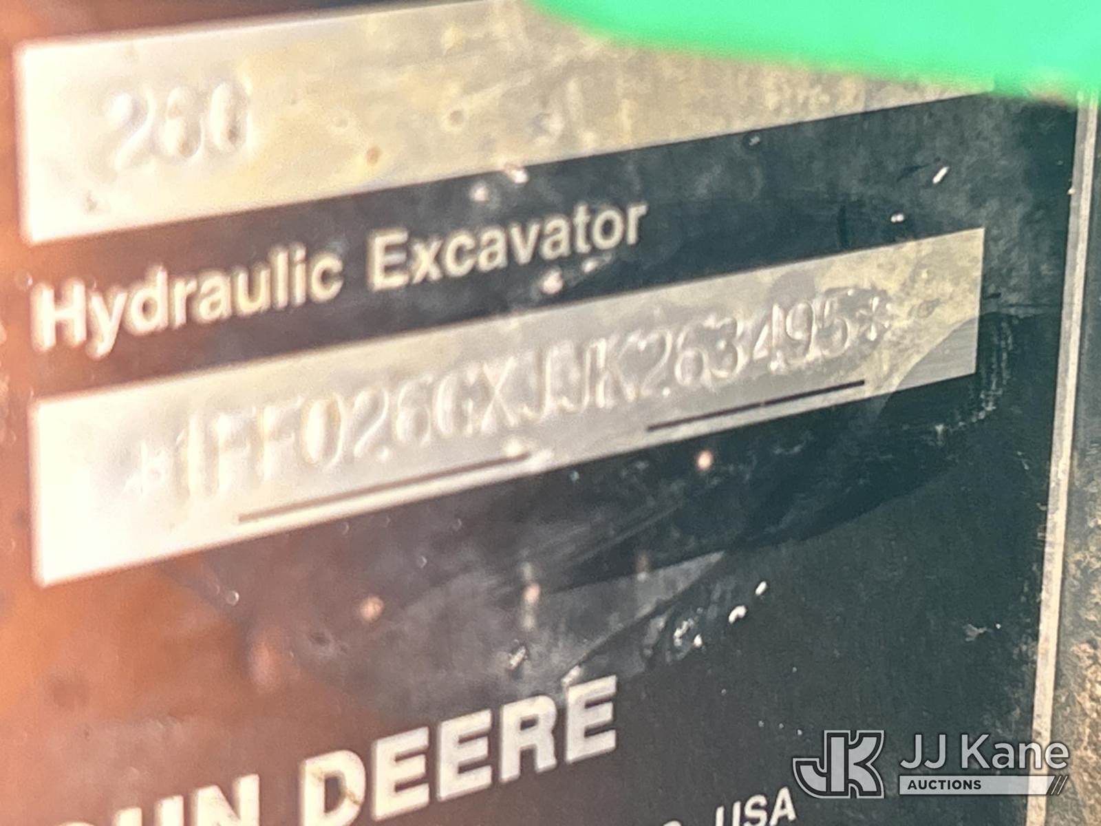 2018 John Deere 26G Mini Hydraulic Excavator, s/n 1FF026GXJJK263495, Yanmar diesel, Hydraulic Driven, with aux hyd, rubber tracks, backfill blade, & ROPS, (Runs, Moves & Operates) (Reads 2,704 hours) NOTE: This unit is being sold AS IS/WHERE IS via Timed Auction and is located in Waxahachie, TX. Inspection & preview days for this unit are the 2 business days prior to the first day of items closing for this auction, item is located at 999 Solon Rd Waxahachie, TX 75165 and hours of operations are 8a-4p. For pre-sale questions, please contact Alex Bayless @ (469) 550-4938. (Buyer is responsible for removal. Assistance by consignor or JJ Kane Auctions is not assured.)
