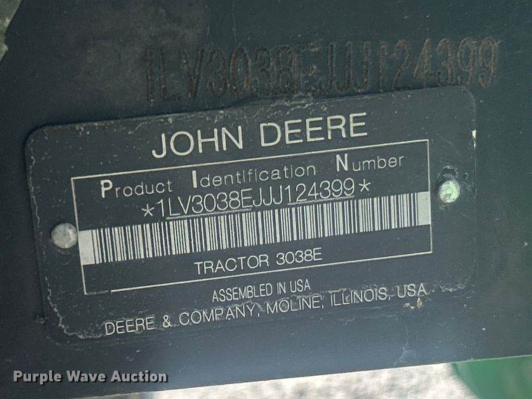 2018 John Deere 3038E MFWD tractor