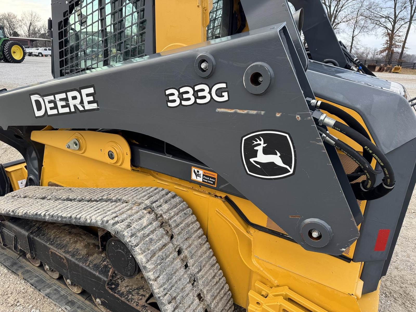 2018 DEERE 333G TRACK SKID STEER, 84 INCH BUCKET, (ONLY 1145 HOURS) HIGH FLOW HYDRAULICS, RIDE CONTROL, SELF LEVEL, 3 WAY PATTERN CHANGER, COUNTER WEIGHTS, ENCLOSED CAB, A/C HEAT, BACKUP CAMERA
