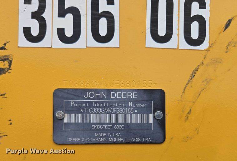 2018 John Deere 333G tracked skid steer loader
