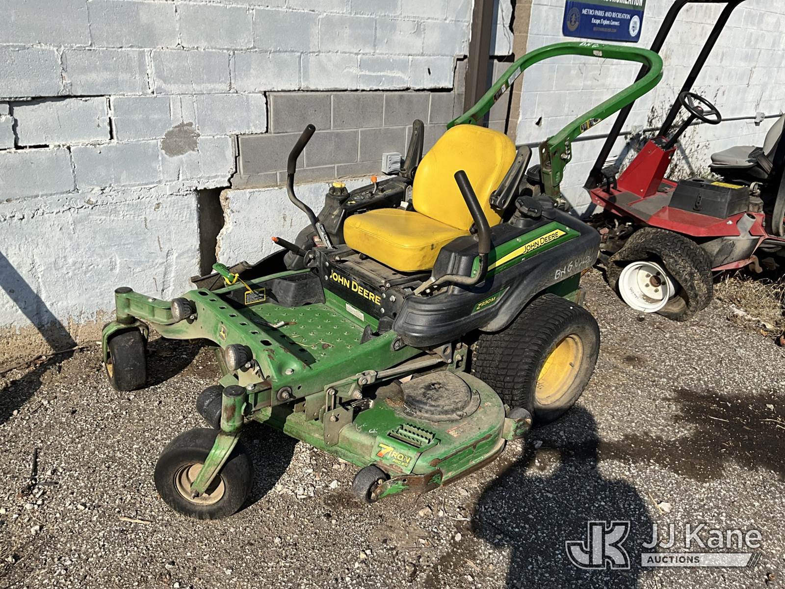 2018 John Deere Z930M Zero Turn Riding Mower, s/n 1TC930MCCJT065222, Hydrostatic, gas, (Runs) (Does Not Move, Bad Transmission, Hours Unknown) NOTE: This unit is being sold AS IS/WHERE IS via Timed Auction and is located in Louisville, KY. For more information & removal arrangements please contact Spencer Owen @ 502-232-2541. Load Out will be by appointment only M-F; must call 24 HRS. in advance. Buyer/Hauler must present copy of paid invoice upon arrival. Purchaser acknowledges ALL lots must be removed within 5 business days of Auction, or a storage fee may be incurred. This item is used and may contain defects that are not immediately detectable. Text description and photos given are meant to be used as a guide only. The conditions are provided by the consignor; you are responsible for inspecting item before bidding. All information provided is believed to be correct but no warranty as such is either intended or implied. All items are sold AS IS - WHERE IS AND WITH ALL FAULTS AND DEFECTS THEREIN. Auctioneer Michael Whitebread / License # 256617 (Buyer is responsible for removal. Assistance by consignor or JJ Kane Auctioneers is not assured.)
