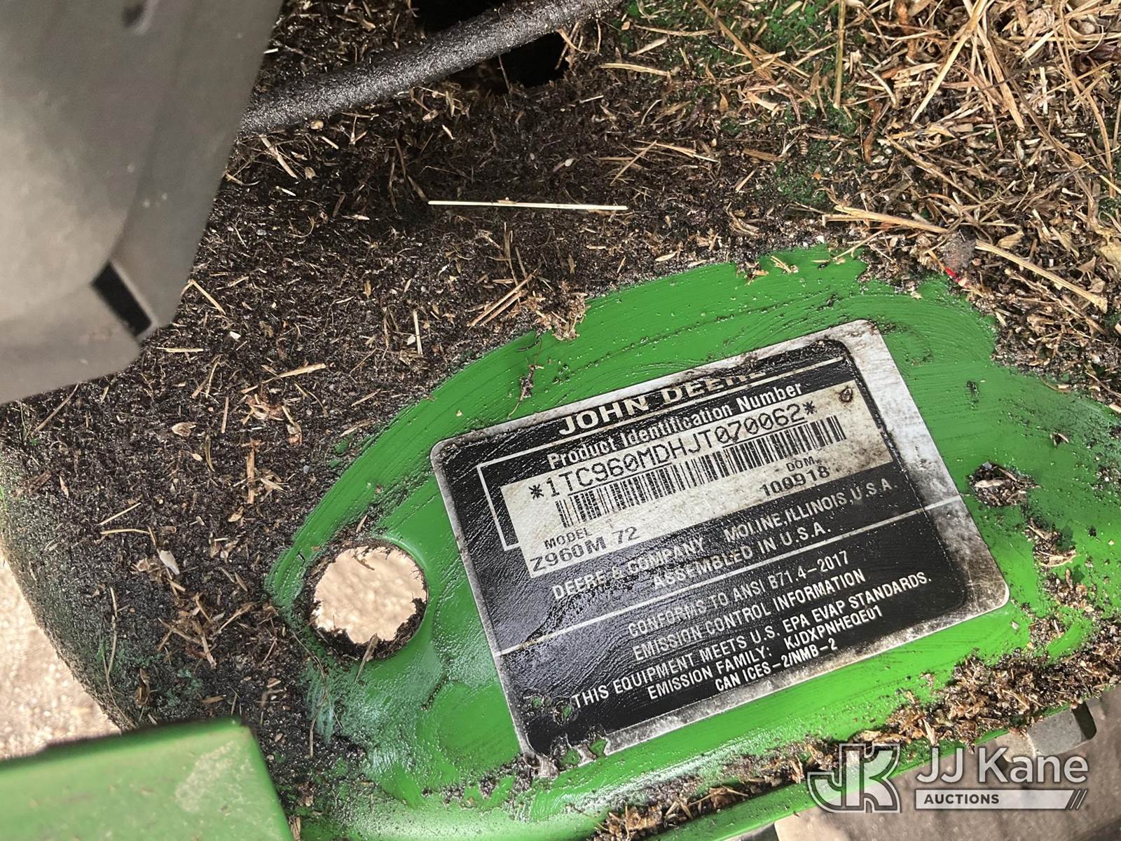 2018 John Deere Z960M Zero Turn Riding Mower, s/n 1TC960MDHJT070062, gas, with 72 in. mower, (Runs, Moves, Operates) (Runs Rough) (Reads 1,252 hours) NOTE: This unit is being sold AS IS/WHERE IS via Timed Auction and is located in Thonotosassa, FL. Inspection & preview days for this unit are the 2 business days prior to the first day of items closing for this auction, item is located at 11720 N US 301 Thonotosassa, Fl 33592 and hours of operations are 8a-4p. For pre-sale questions, please contact Office Staff @ (813) 986-2485. (Buyer is responsible for removal. Assistance by consignor or JJ Kane Auctions is not assured.)