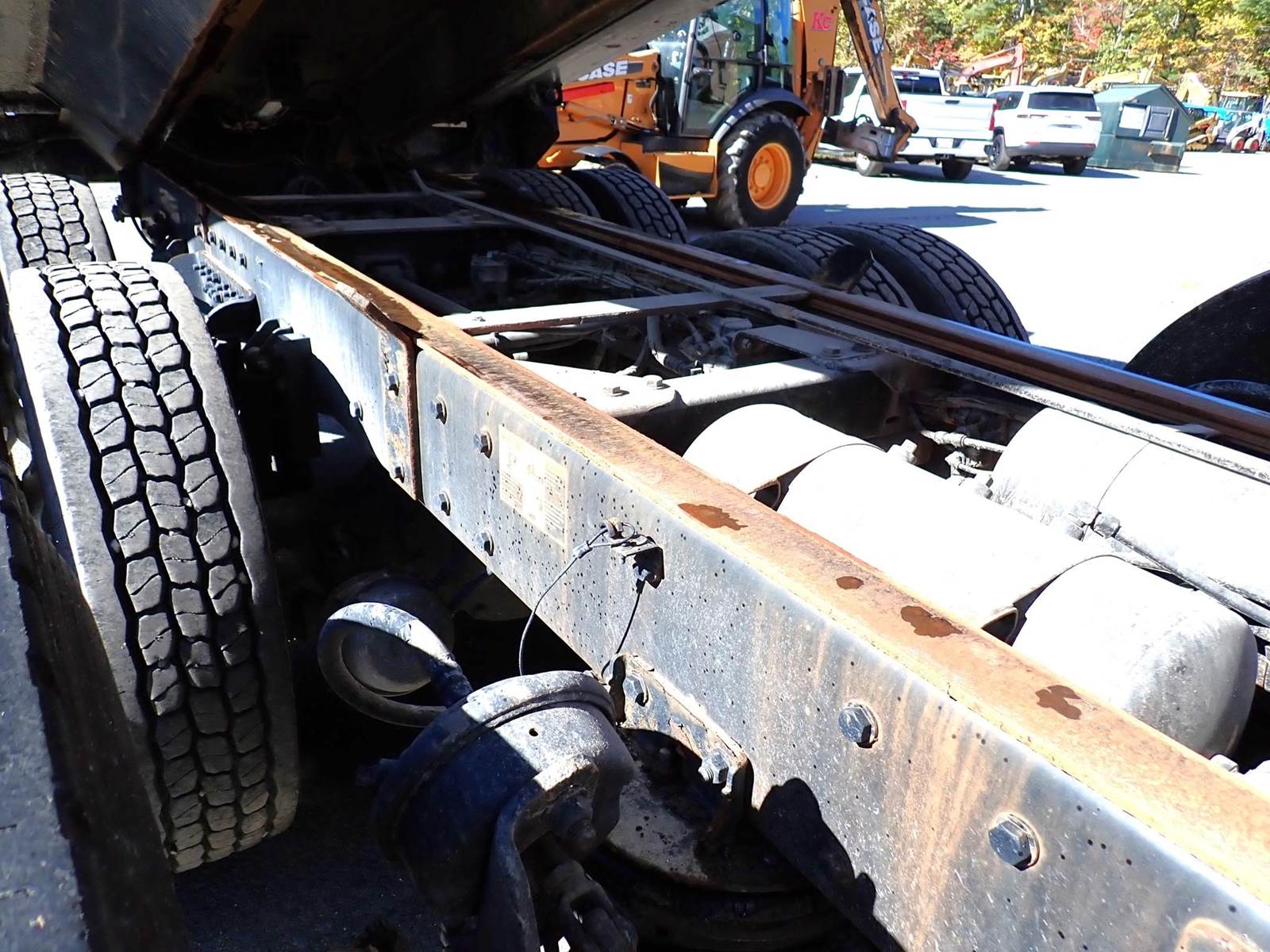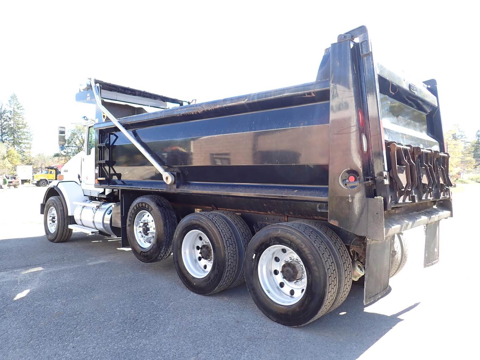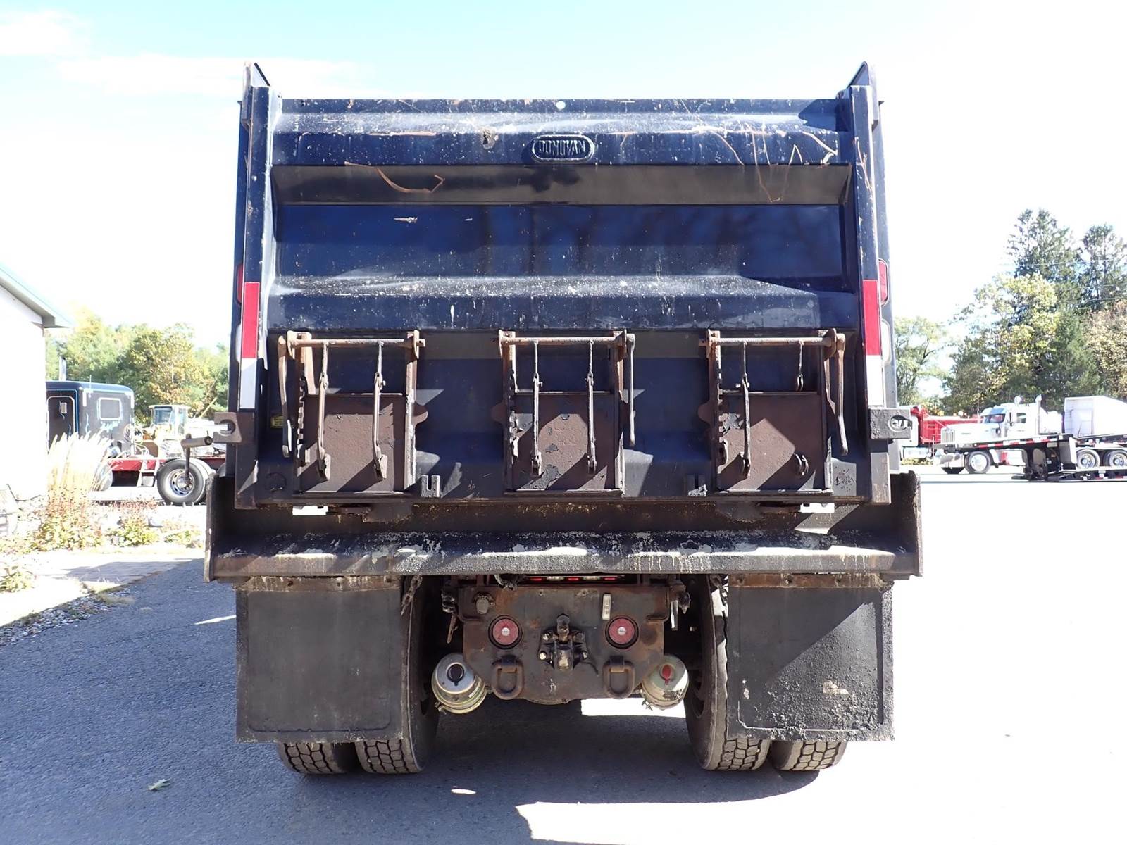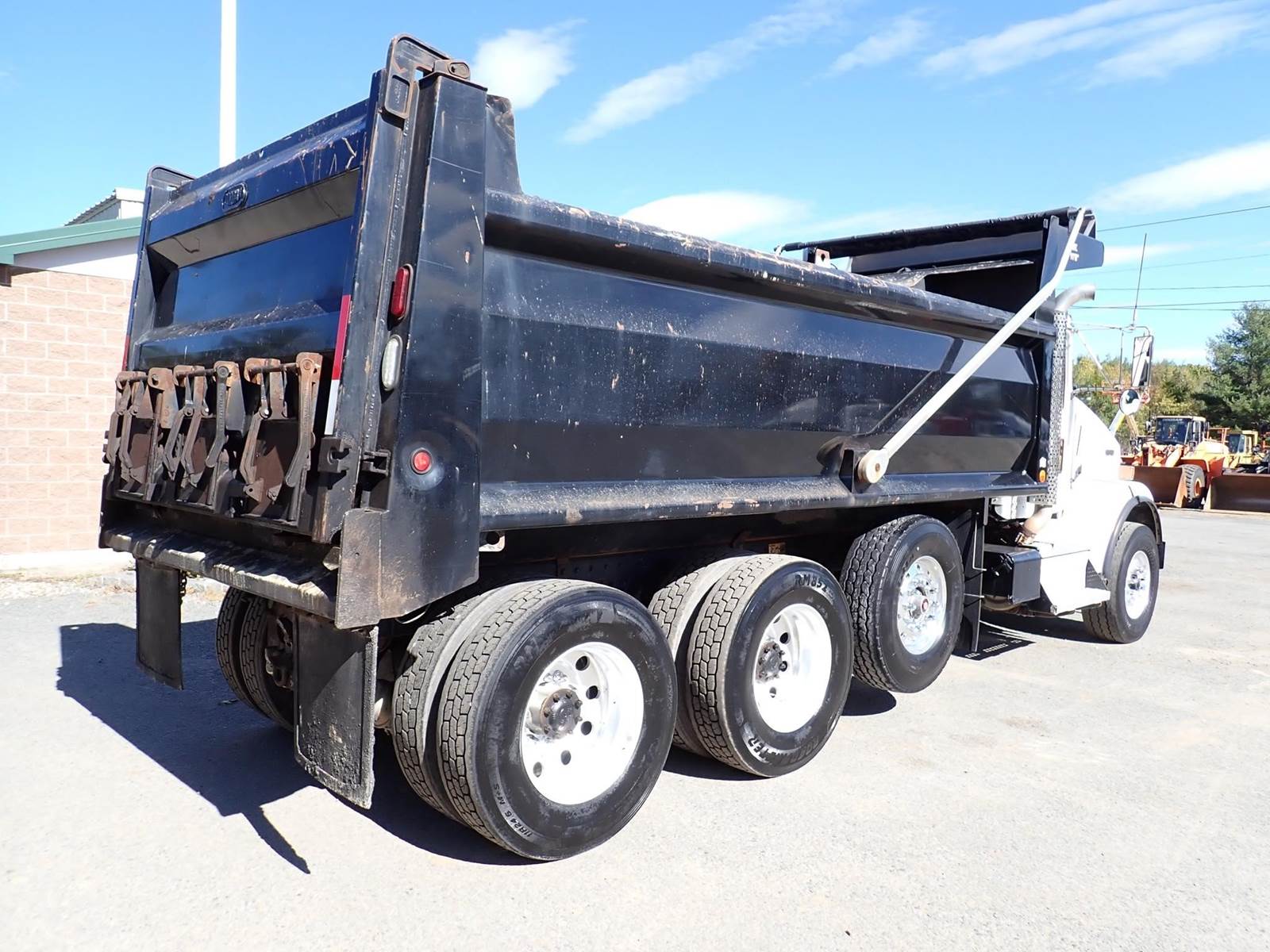 triaxle, 17.5 ft steel body w/ 3 chutes, Paccar MX-13, 485 hp, Fuller 8LL, rubber block suspension, 20k f, 20k p, 46k r, hitch