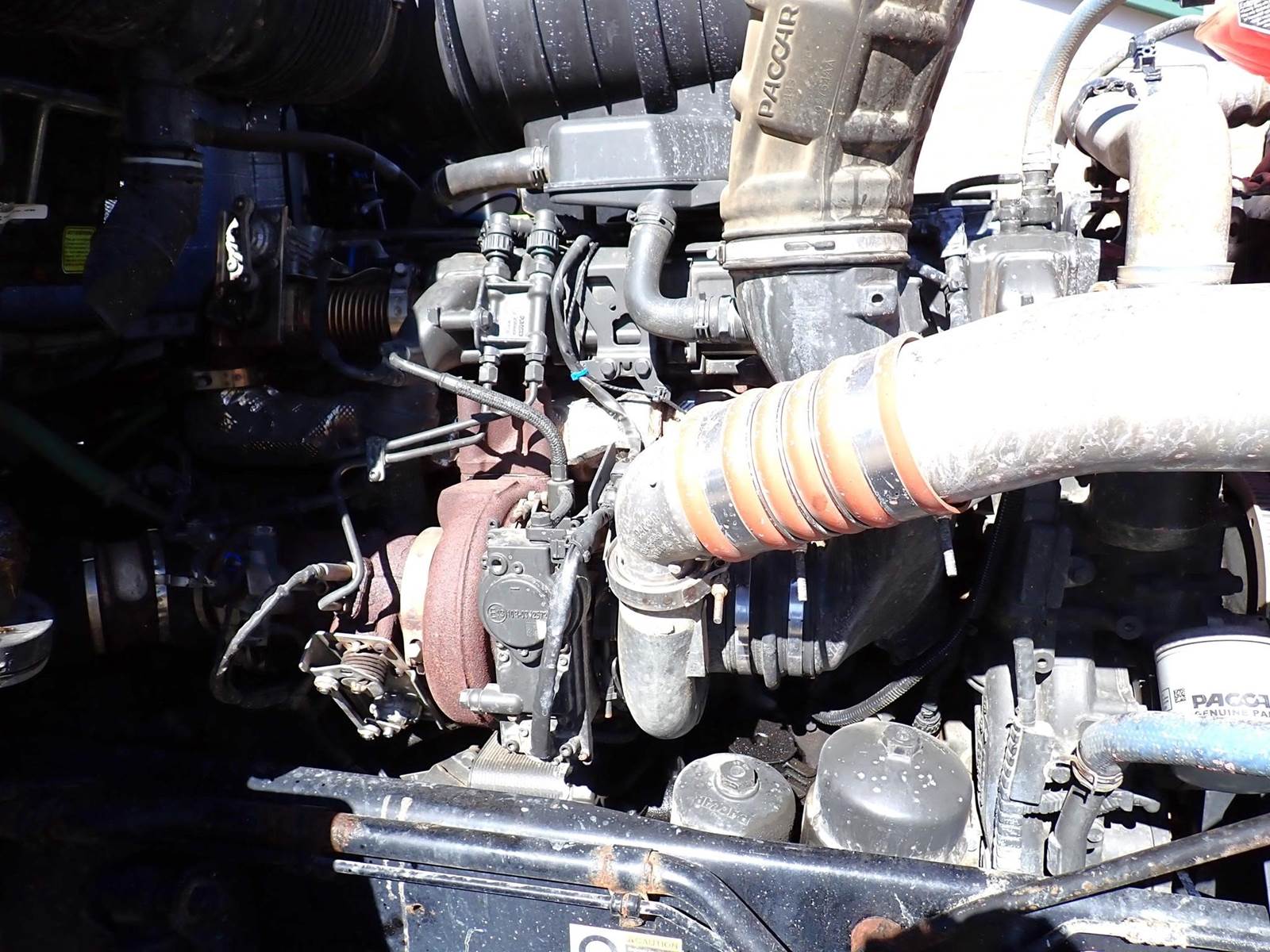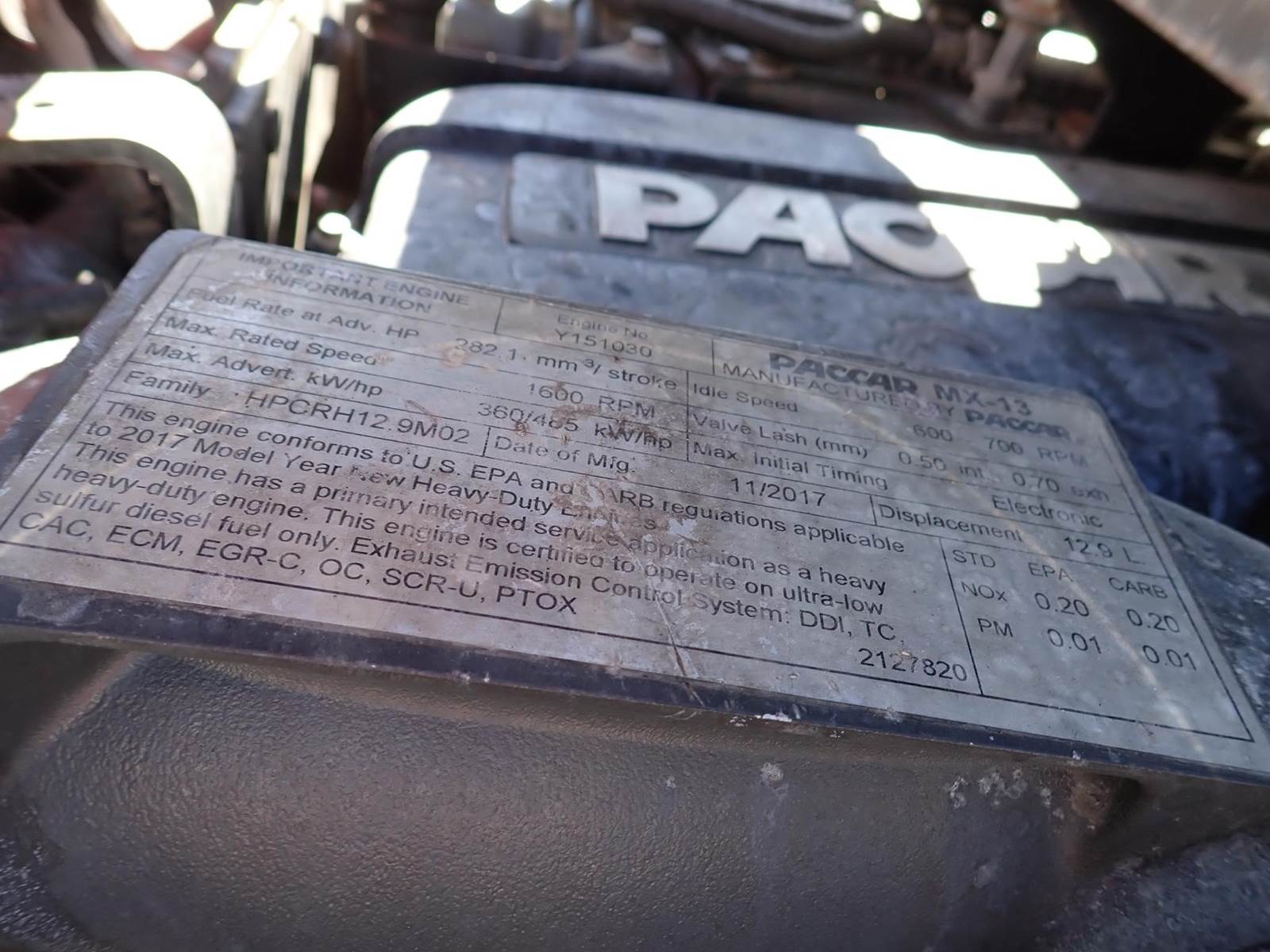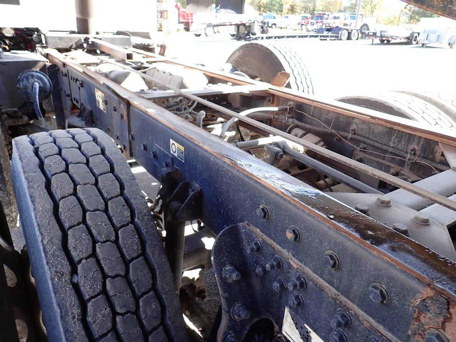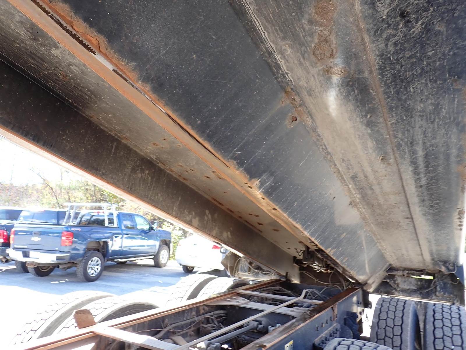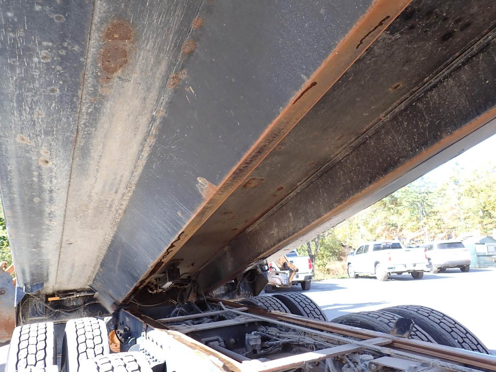 triaxle, 17.5 ft steel body w/ 3 chutes, Paccar MX-13, 485 hp, Fuller 8LL, rubber block suspension, 20k f, 20k p, 46k r, hitch