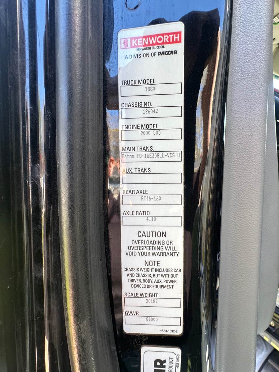 2018 Kenworth T880 Triaxle Dump Truck- 505 HP Cummins X15 Diesel, Eaton UltraShift Automatic Trans, 613,937 Miles (18,806 Hrs.,) **ENGINE REBUILT 150K MILES AGO!!!**, Empty Weight- 20,187, GVWR- 86,000, Front Axle- 20K, Steerable Lift Axle- 20K, Rear Axle Rating- 46K, Hendrickson Air Suspension, Wheelbase- 234", Ratio- 410, 18' Mac Aluminum DUmp Body W/ Electric Tarp, CALL FOR VIDEOS!!!