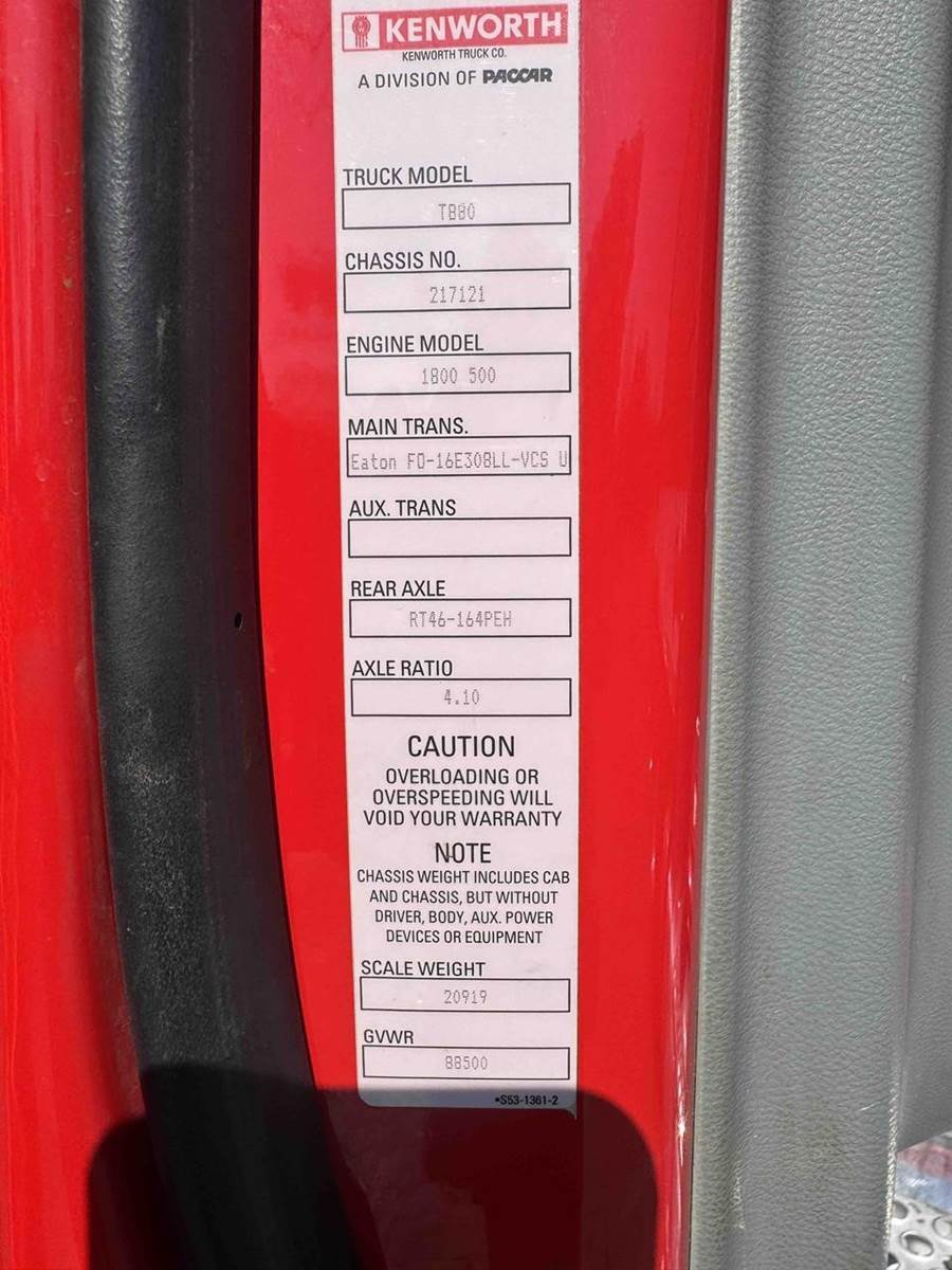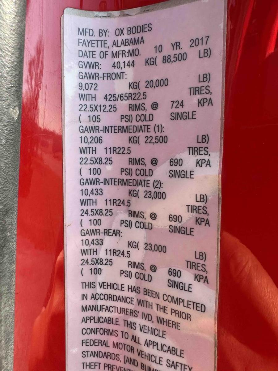 20,000 LB FRONT AXLE, 46,000 LB REAR AXLES, 22,500 LB PUSHER AXLE.