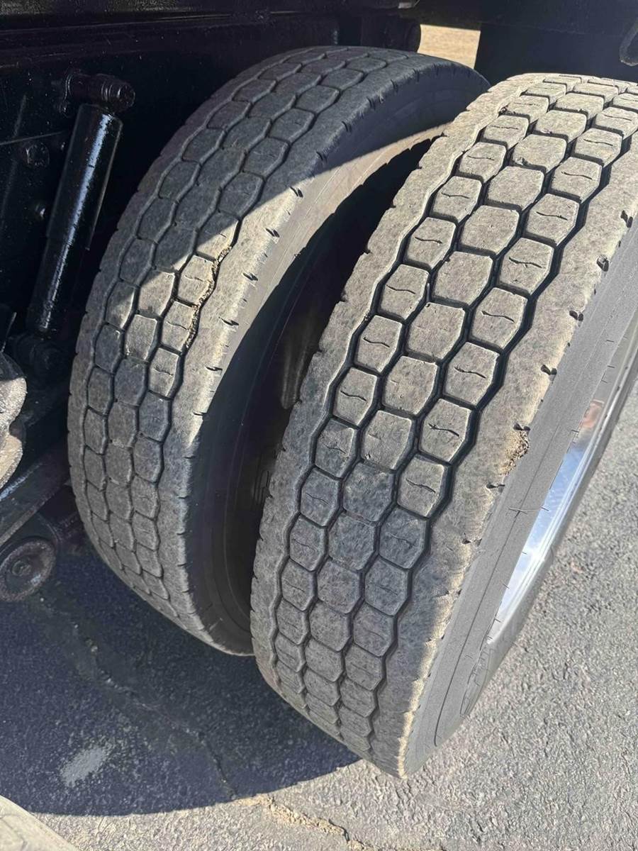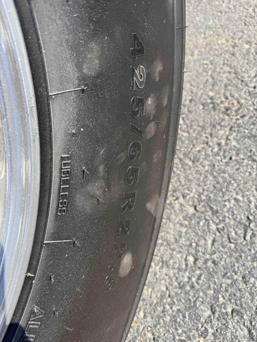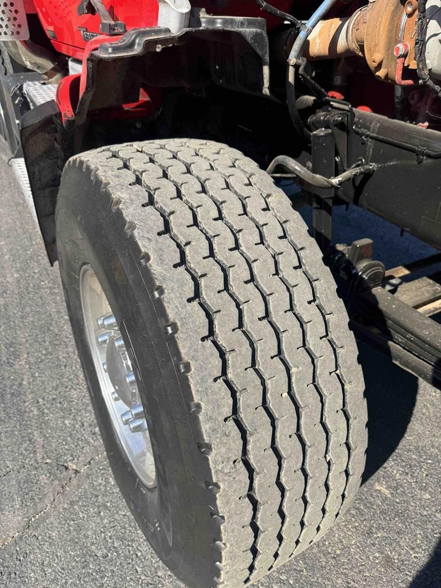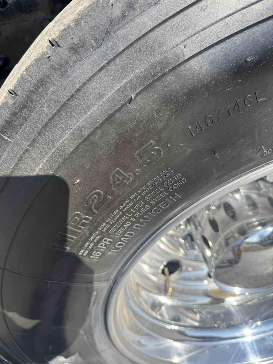 24.5 DRIVE TIRES WITH 425/65/R22.5 STEER TIRES, WITH ALL ALUMINUM WHEELS.