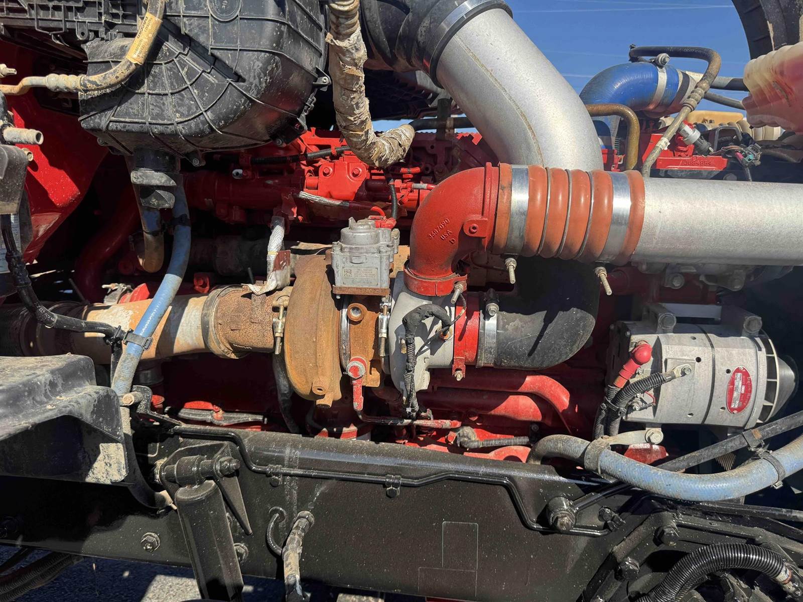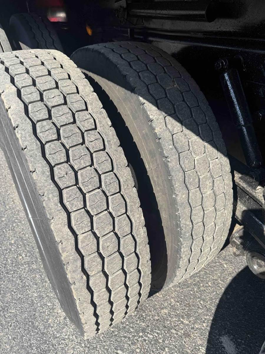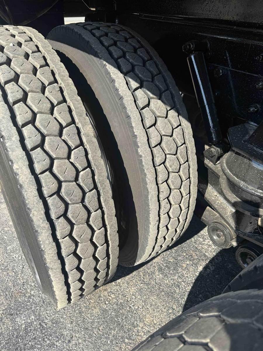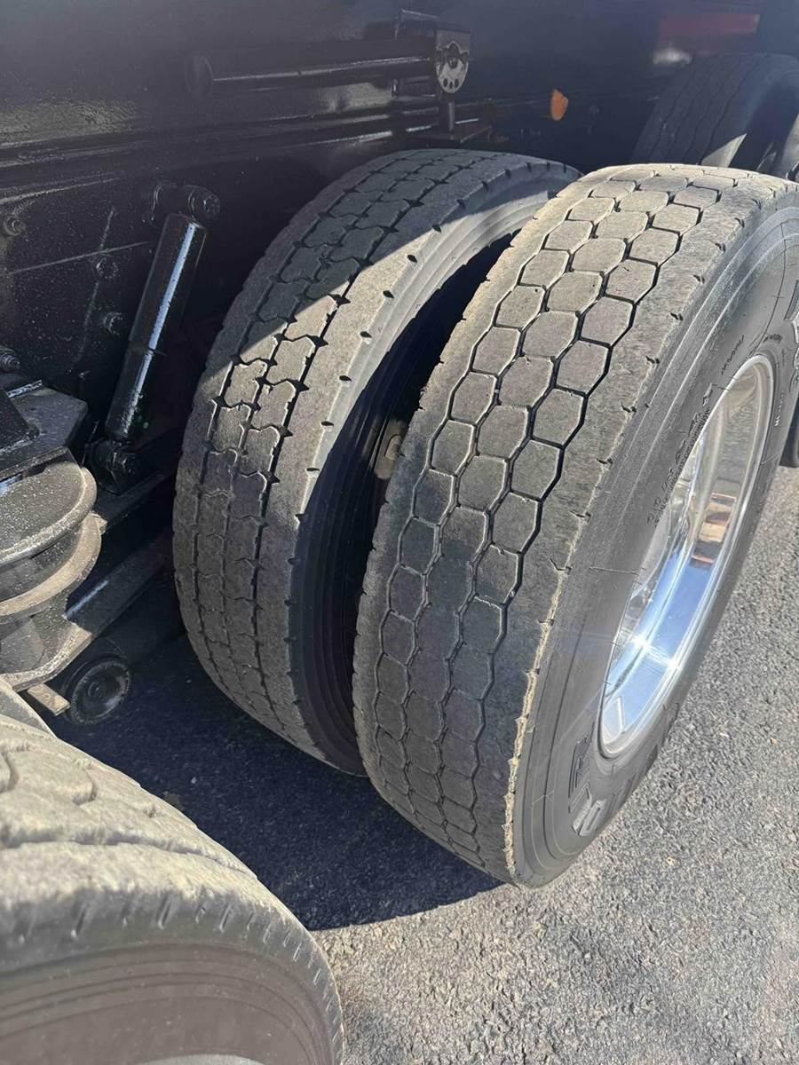 24.5 DRIVE TIRES WITH 425/65/R22.5 STEER TIRES, WITH ALL ALUMINUM WHEELS.