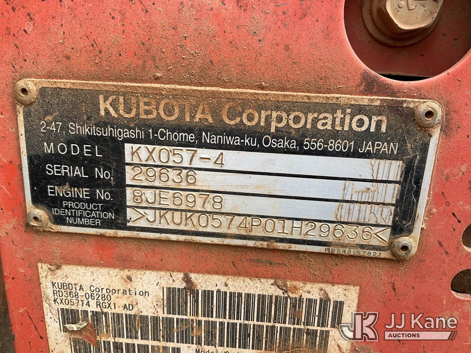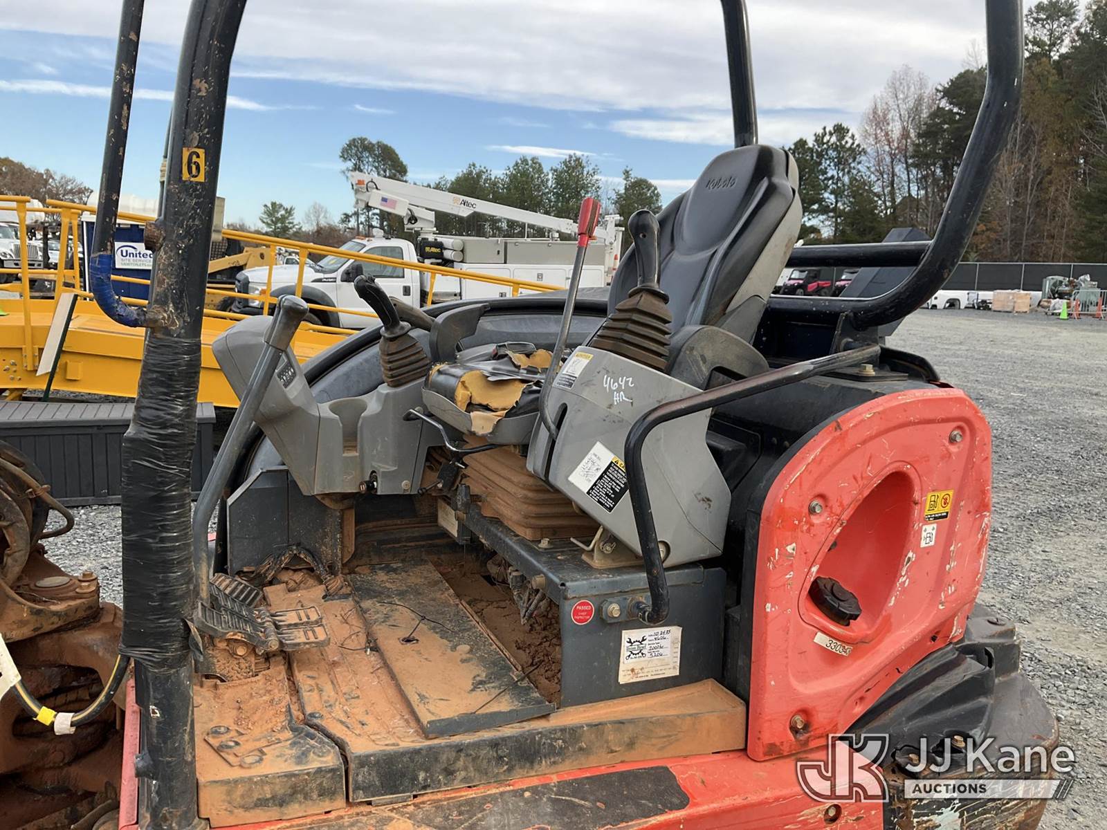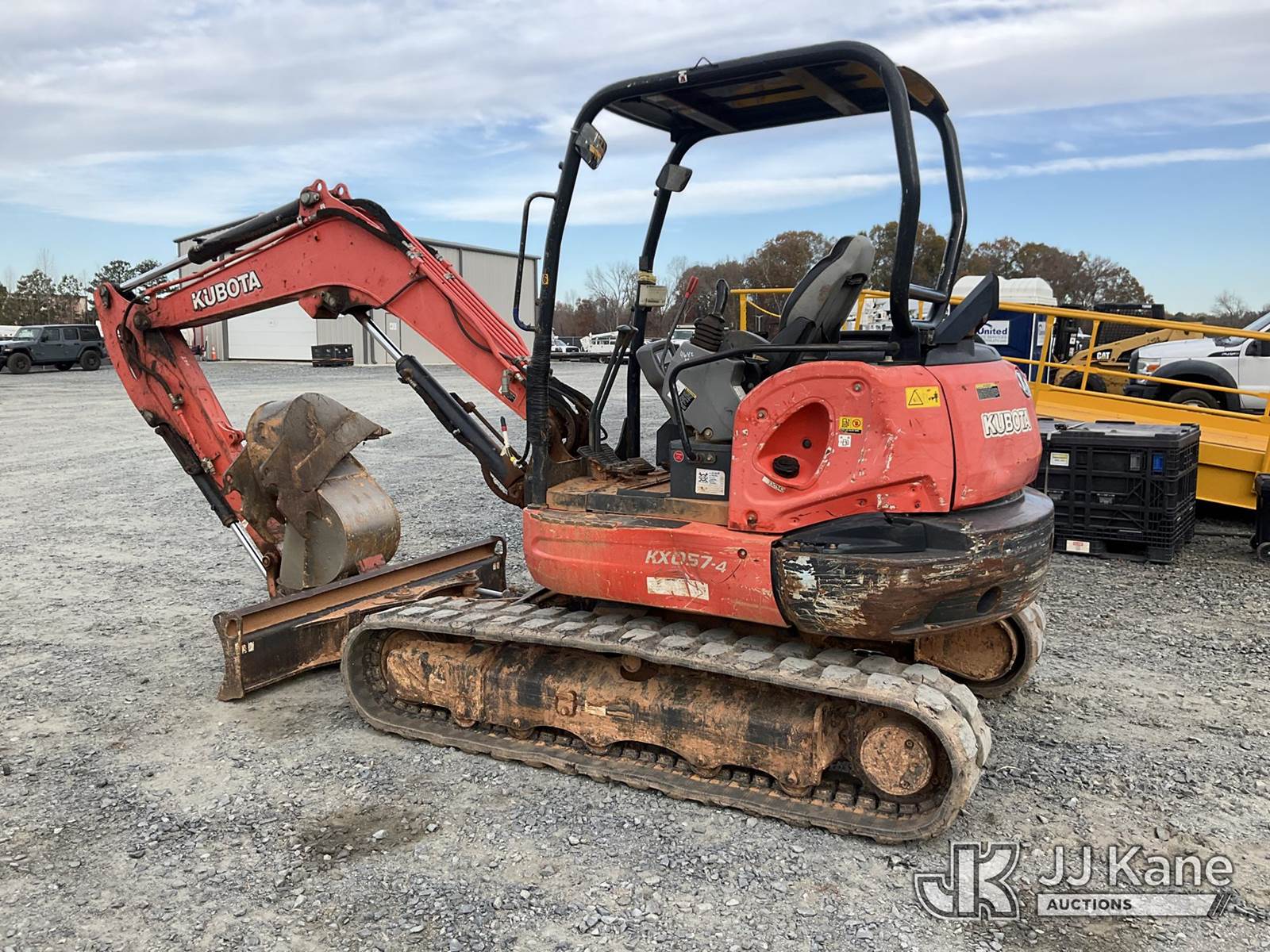 2018 Kubota KX057-4 Mini Hydraulic Excavator, s/n 29636, Kubota Hydraulic Drive, diesel, with 6 ft stick, 18 in digging bucket, 12 in digging bucket, aux hyd, backfill blade, rubber tracks & ROPS, (Runs, Moves & Operates) (Reads 4,642 hours) NOTE: This unit is being sold AS IS/WHERE IS via Timed Auction and is located in China Grove, NC. Inspection & preview days for this unit are the 2 business days prior to the first day of items closing for this auction, item is located at 820 E NC Hwy 152 China Grove, NC 28023 and hours of operations are 8a-4p. For pre-sale questions, please contact Office Staff @ (704) 674-1113. (Buyer is responsible for removal. Assistance by consignor or JJ Kane Auctioneers is not assured.)