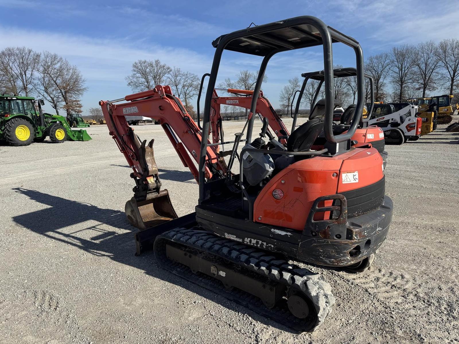 2018 KUBOTA KX71-3 MINI EXCAVATOR, 2569 hours, hydraulic thumb, 18 inch digging bucket, backfill blade, 2 spd travel, stick lights, open cab...