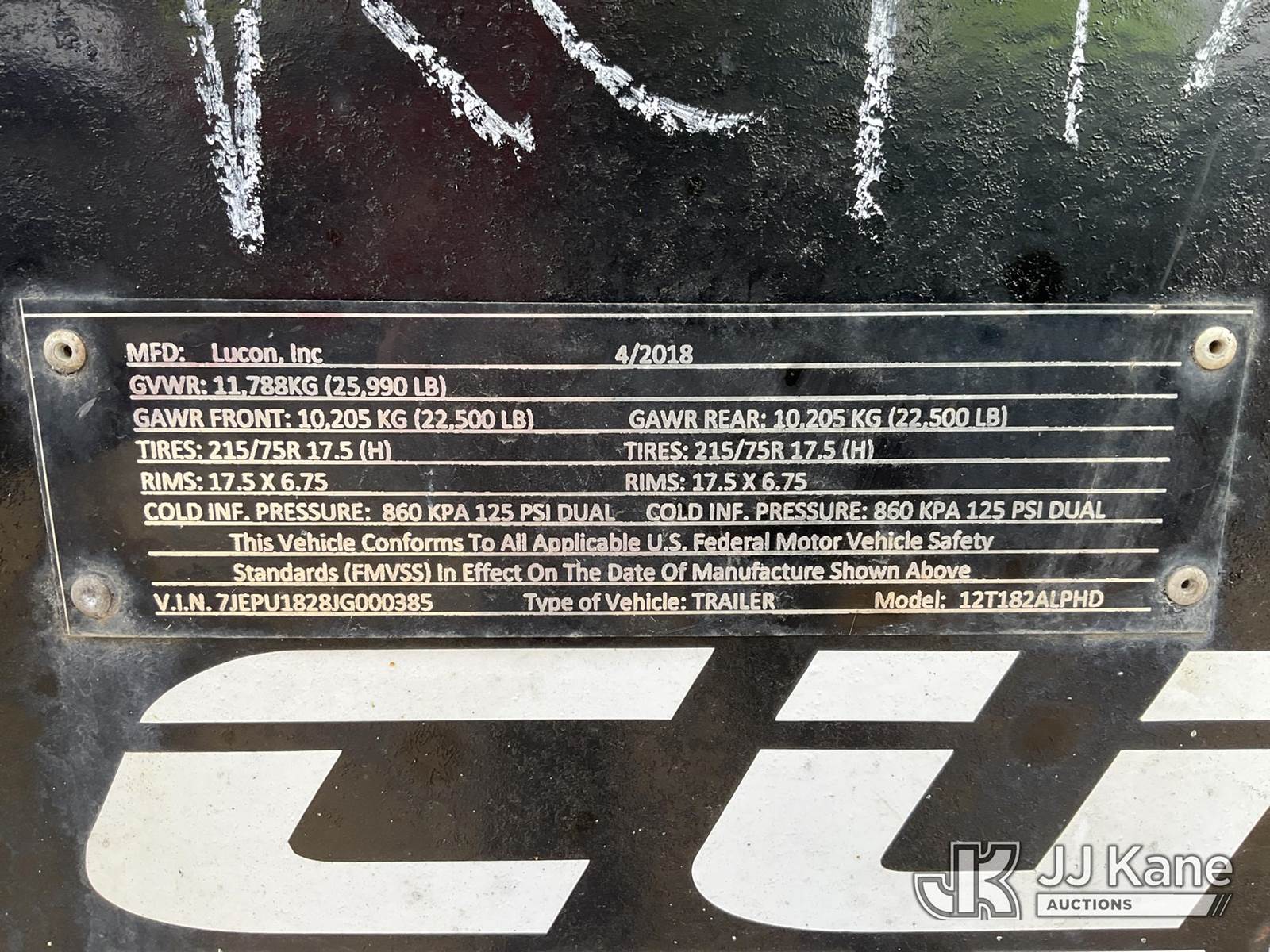 2018 Lucon Inc. 12T182ALPHD T/A Tagalong Equipment Trailer, s/n 7JEPU1828JG000385, with Air brakes, 34ft long overall, 18ft flat deck, 5 ft beaver tail, 7ft steel ramps, (Air Powered Rear Gate-Unable to Operate-Condition Unknown) This is a Titled Item NOTE: This unit is being sold AS IS/WHERE IS via Timed Auction and is located in South Beloit, IL. Inspection & preview days for this unit are the 2 business days prior to the first day of items closing for this auction, item is located at 14354 Dearborn Ave South Beloit, IL and hours of operations are 8a-4p. For pre-sale questions, please contact Derek Eklund at (608) 904-0618 or (derek.eklund@jjkane.com). (Buyer is responsible for removal. Assistance by consignor or JJ Kane Auctions is not assured.)