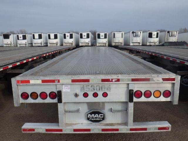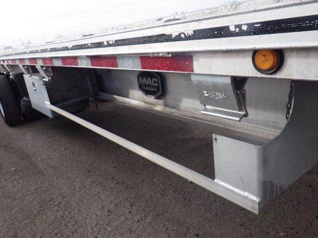 2018 MAC All Aluminum Flatbed, 53' x 102", California Legal Trailer, Aluminum Main Beams and Rails, Nail Strips, Stake Pockets, Pipe Spools, Sliding Winches, Dunnage Rack, 1 Tool Box, Fixed Spread Air Ride, Aluminum Wheels, 22.5LP Tires, ICC Bumper with ICC Filler Plate, 4 Rear S/T/T Lights.