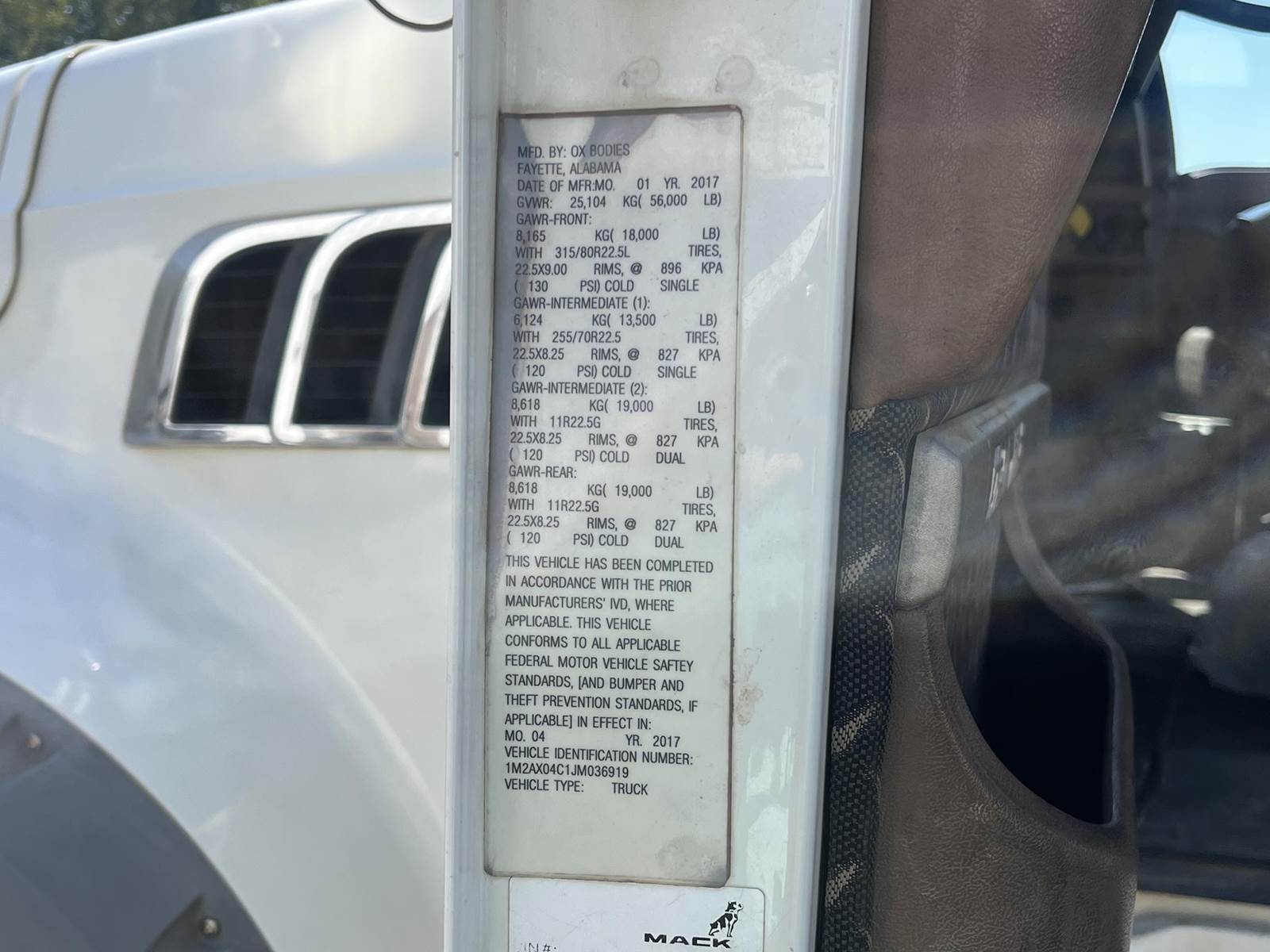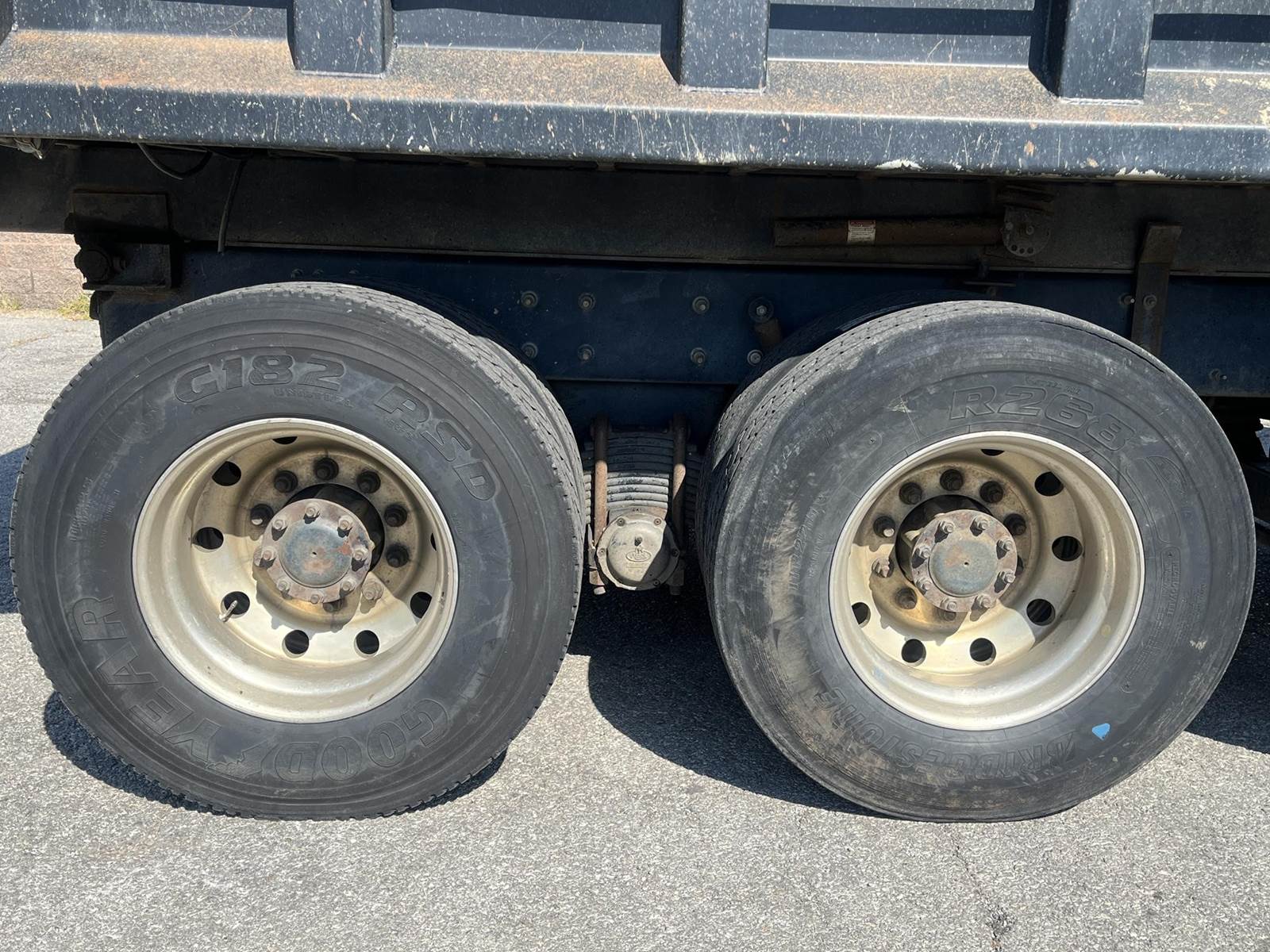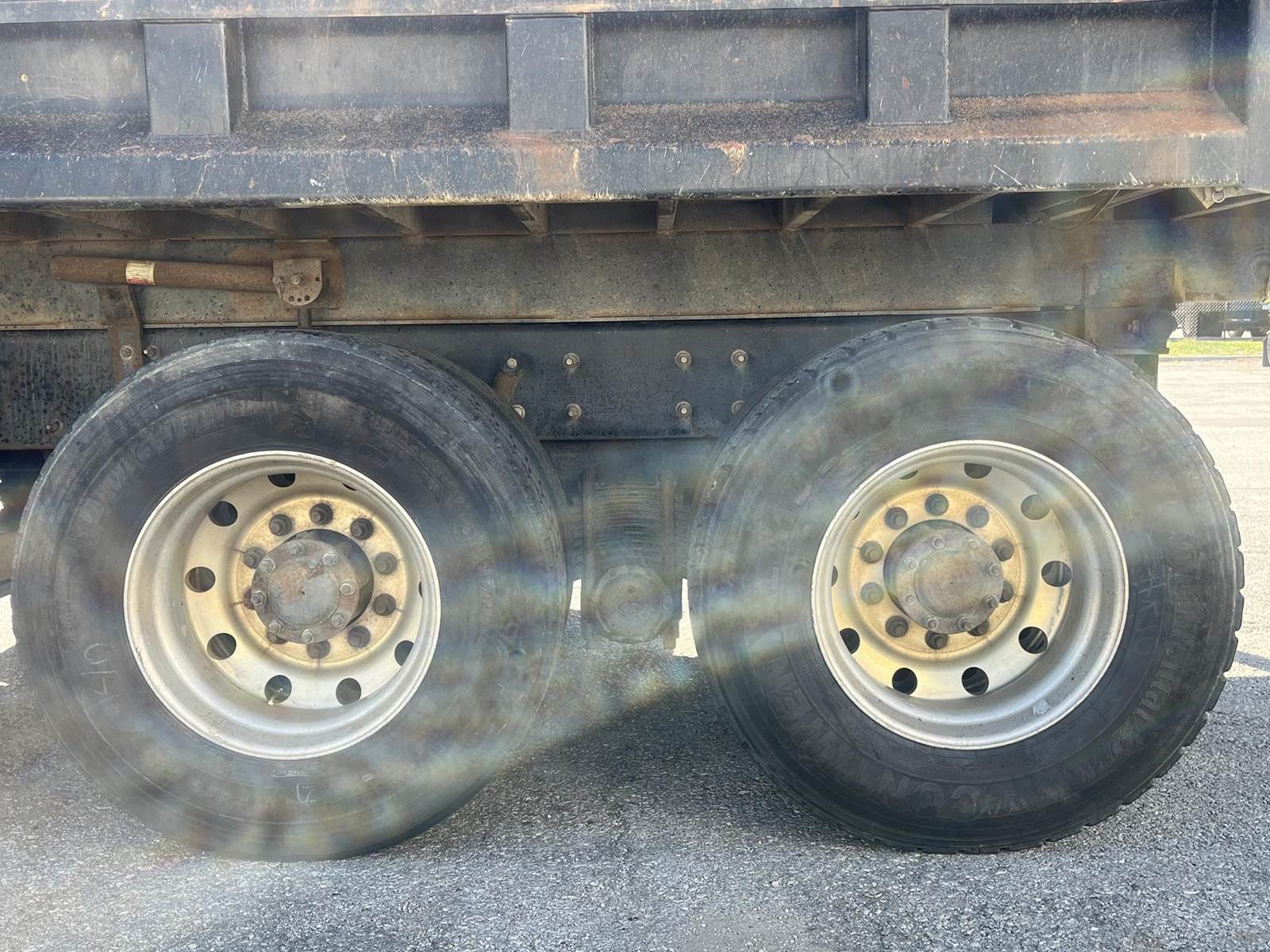 18,000 Front axle weight, 38,000 rear axle weight, and 20,000 drop axle weight. Camel back suspension, new tarp motors, vertical exhaust, bullet lights, all aluminum tires, steel dumb bed, Manual transmission, leather seats, chrome bumper, 17ft bed, and so much more!!!