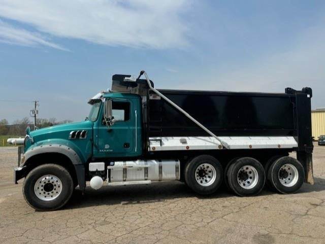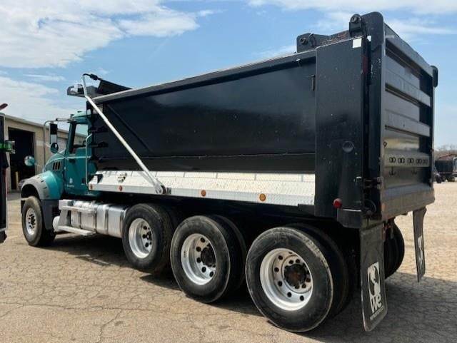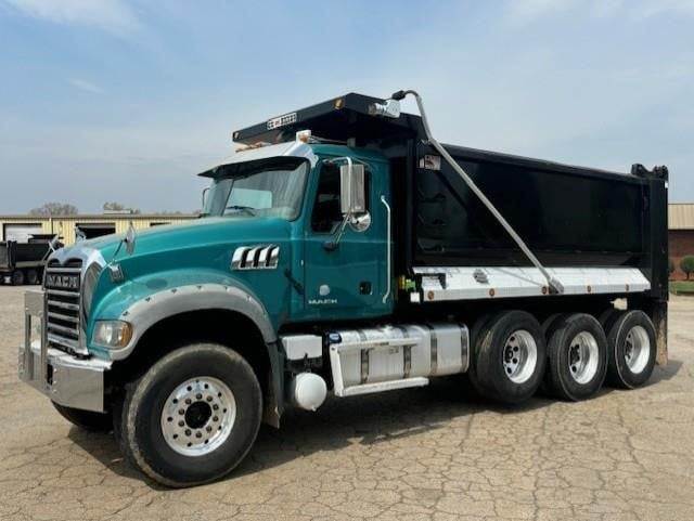 Tri Axle, MP8 Mack 455 HP, Allison Automatic 6 Speed, 4.19 Ratio, 20,000 Front Axle, 46,000 Rear Axle, 227" Wheelbase, 21' Bridge, Camelback, Thick Frame, 2 Stage Engine Brake, Air Brake, Axle & Differential, 16' HARDOX STEEL OX Dump Body, 60" Sides, High Lift Gate, Air Gate, Electric Tarp, All Aluminum, Single Stack, Aluminum Fuel Tank, Daylite Doors, Peep Window, Air Ride Cab, Dual High Back Seats, High Level Interior, Heated Mirrors, Cruise Control, Tilt & Telescopic Steering Wheel, AM/FM CD, Power Windows, P/S, A/C