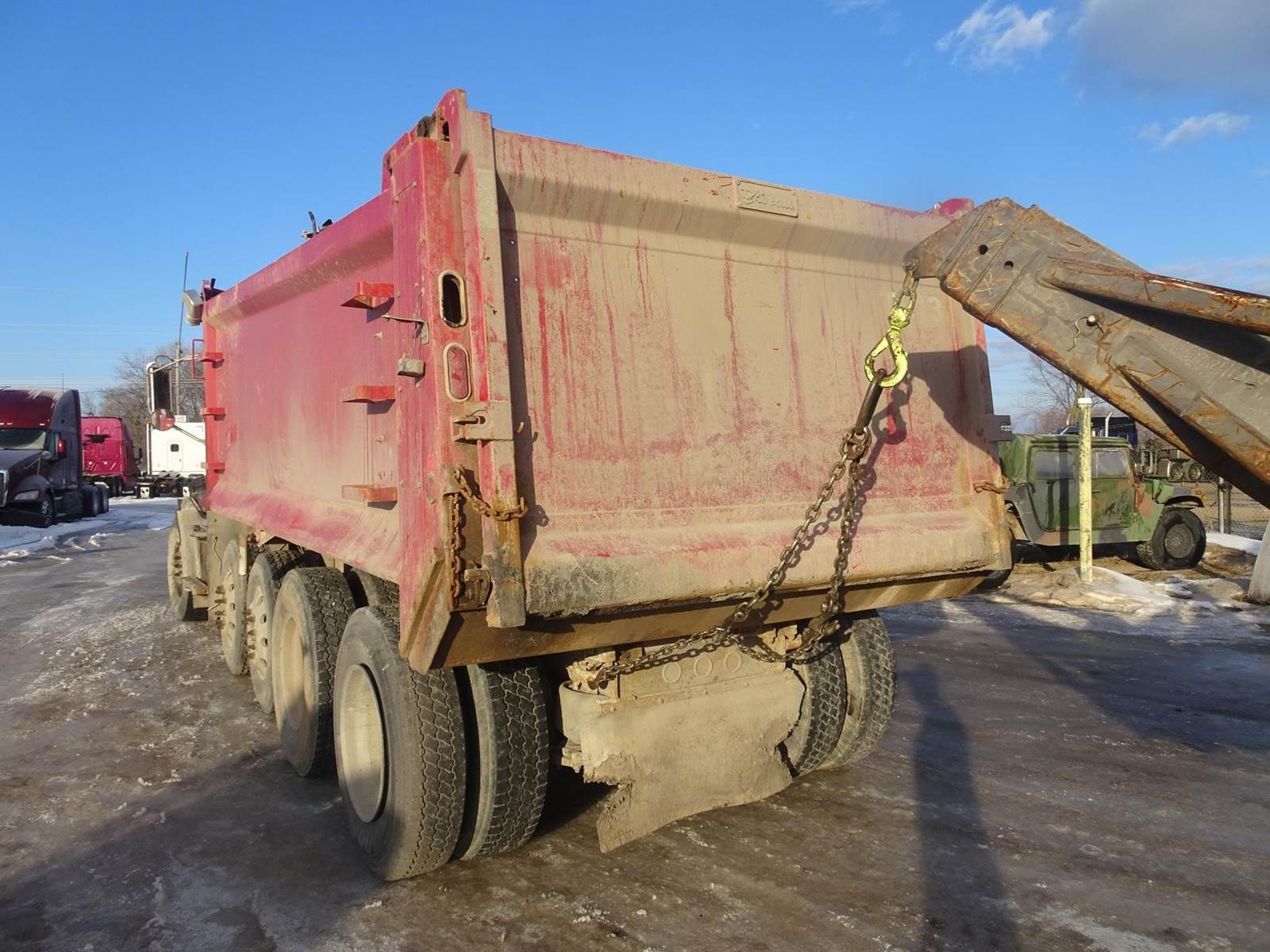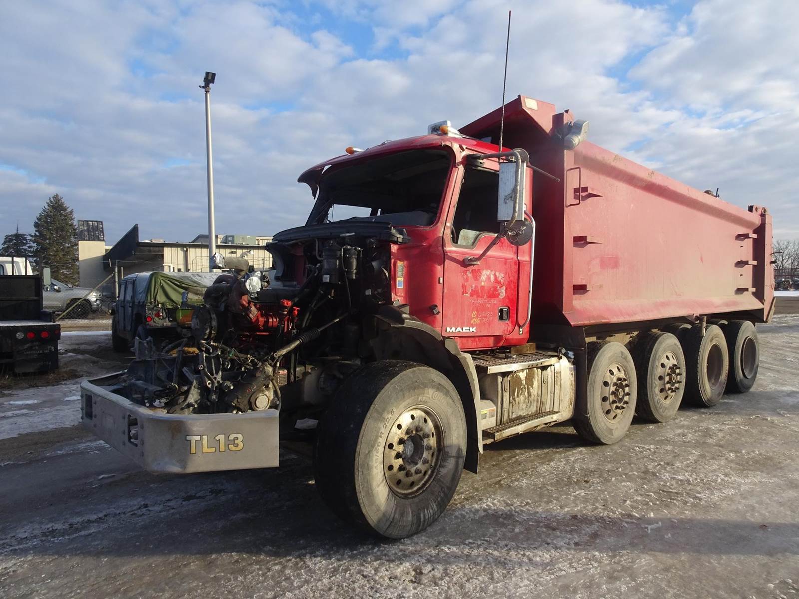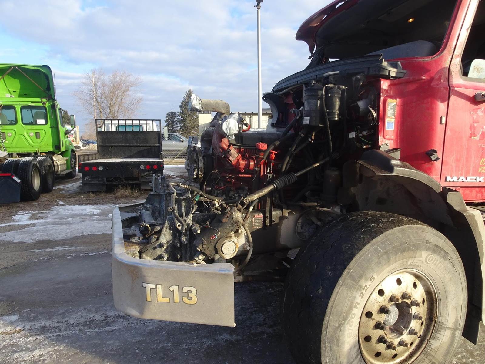 clean title, easy builder, engine runs, we have all parts to repair for sale, heavy steel frame, 2 Hendrickson steerable pusher axles, 19.5' box, full locking mack rears on air ride, mack m drive auto trans.