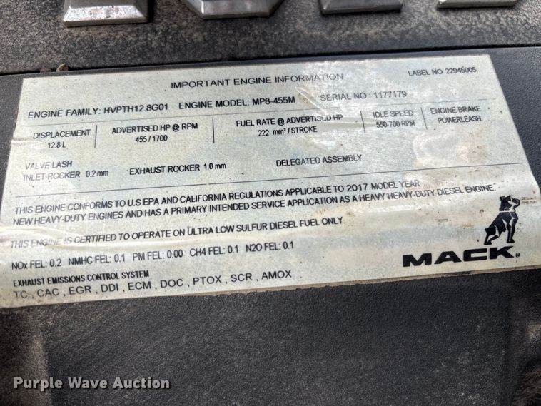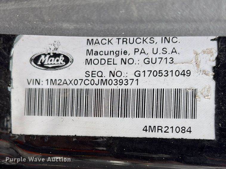 2015 Mack GU813 roll-off container truck, Miles: 304,436 on odometer, VIN: 1M2AX18C0FM028253, Engine, Mack MP8-415C, Serial: 1059596,...