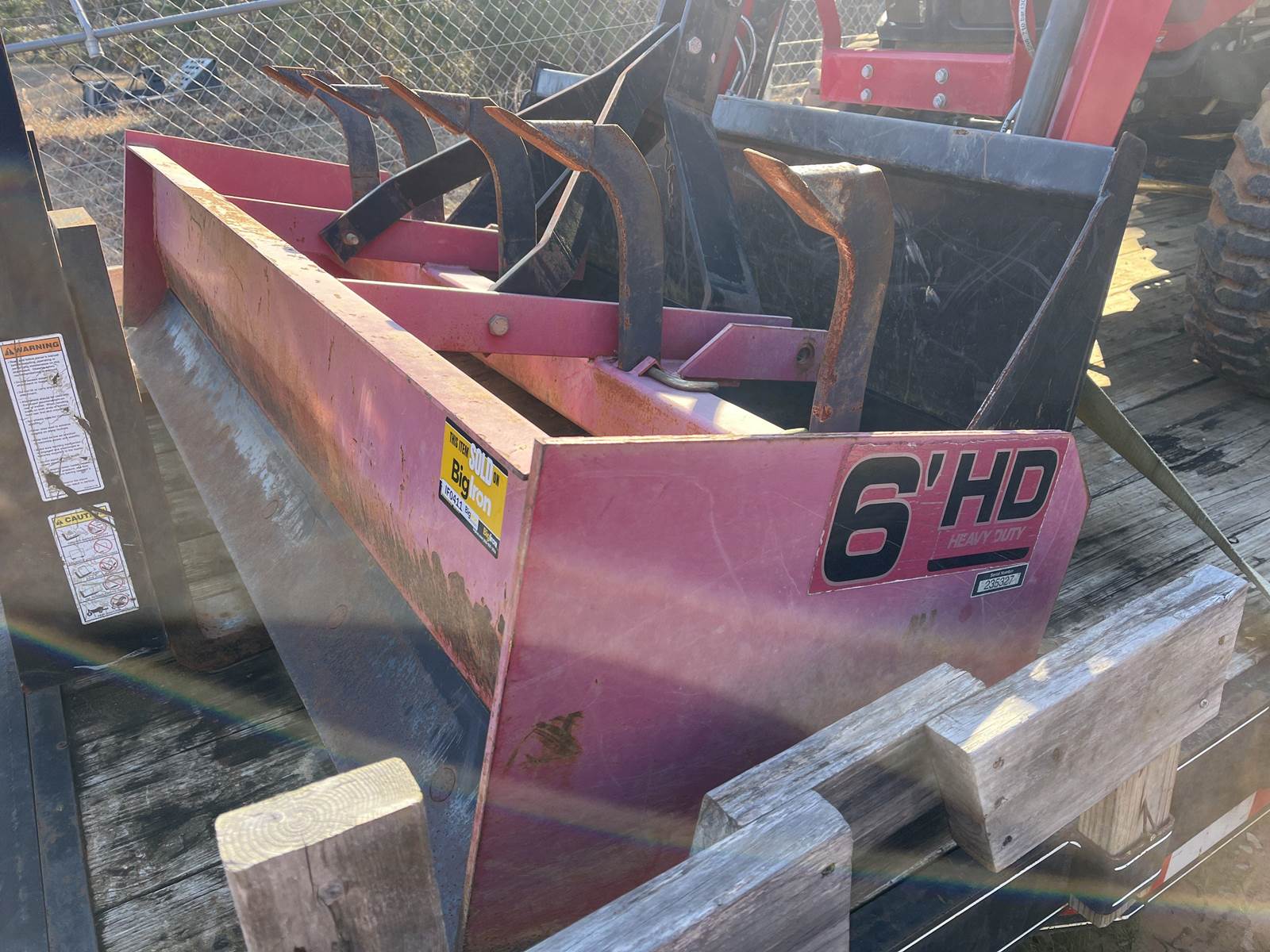 2018 Mahindra 6’ 3-Pt Box Scraper, Dual Bolt on Cutting Edges, 5 Scarifier Teeth, Note: Paint Faded and some Surface Rust, 1 Bent Scarifier Shank, SN: 235327