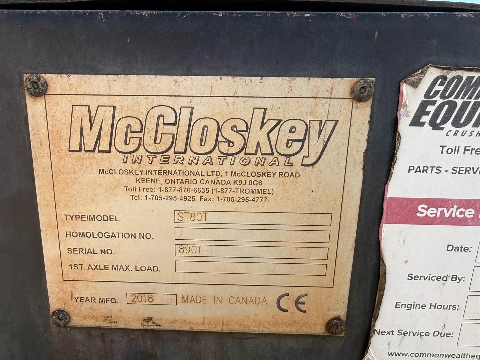 2018 McCloskey ST80T Conveyor