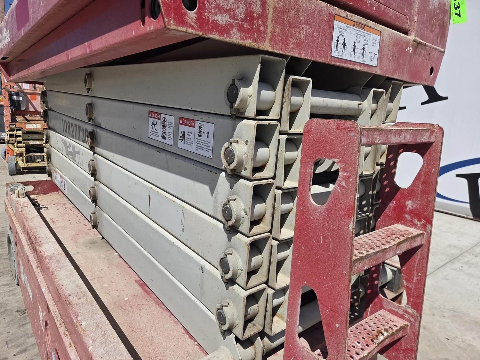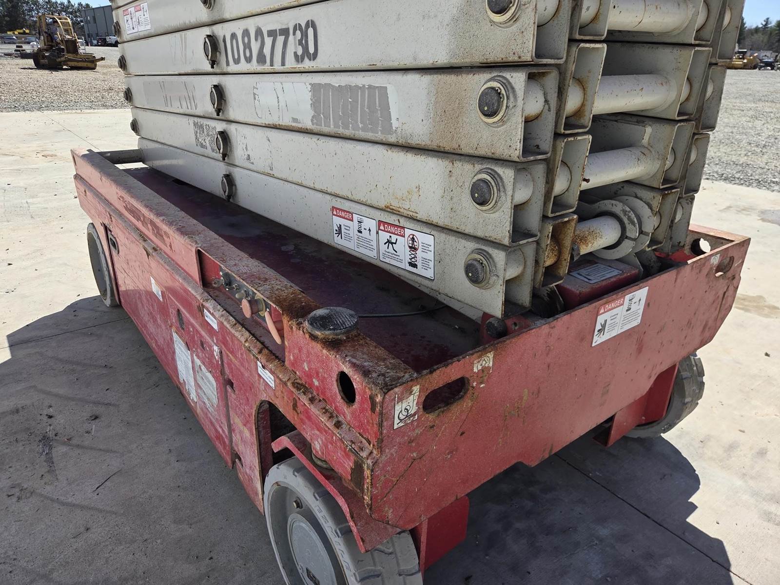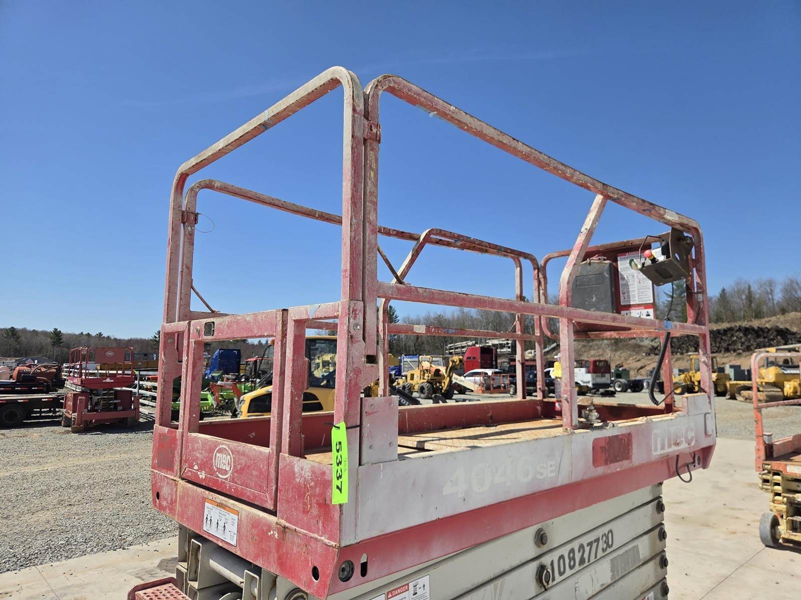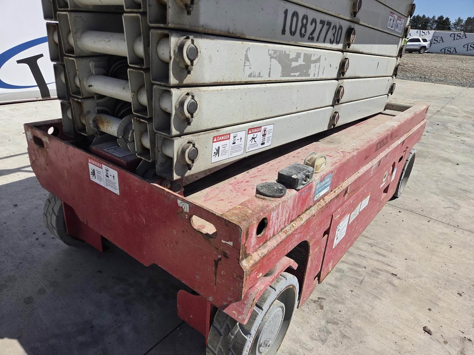 24V DC, Approx. 39' Max Height, 550LB Max Capacity, Approx. 88"x54" Platform, Approx. 54" Extension, Ground/Platform Controls, 15x5 Tires Available for inspection M-F 8 AM - 4 PM. Call Office 715-443-5000.