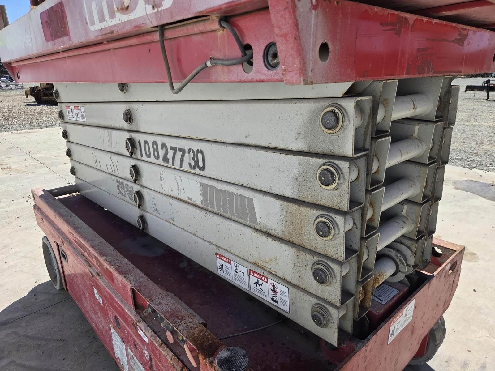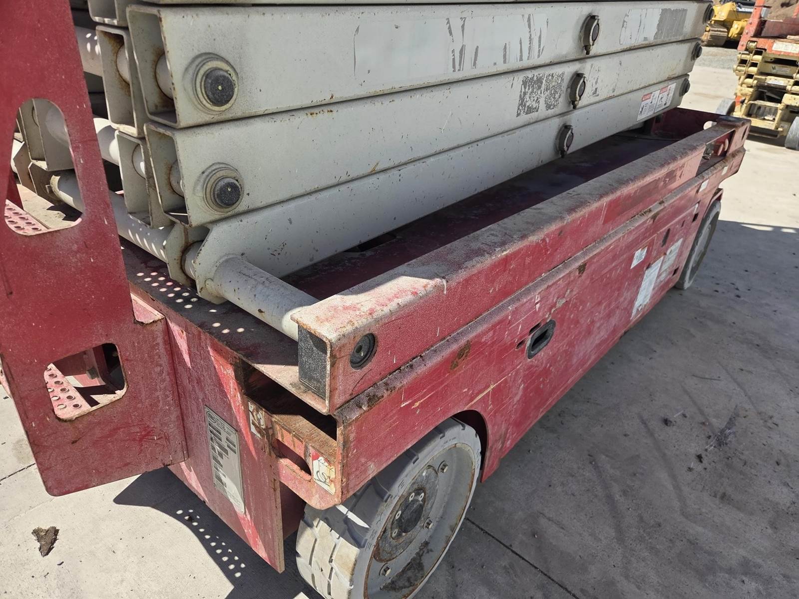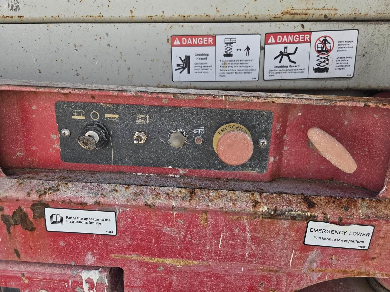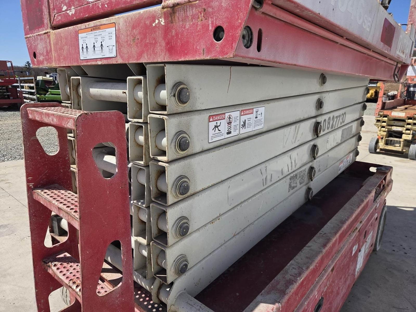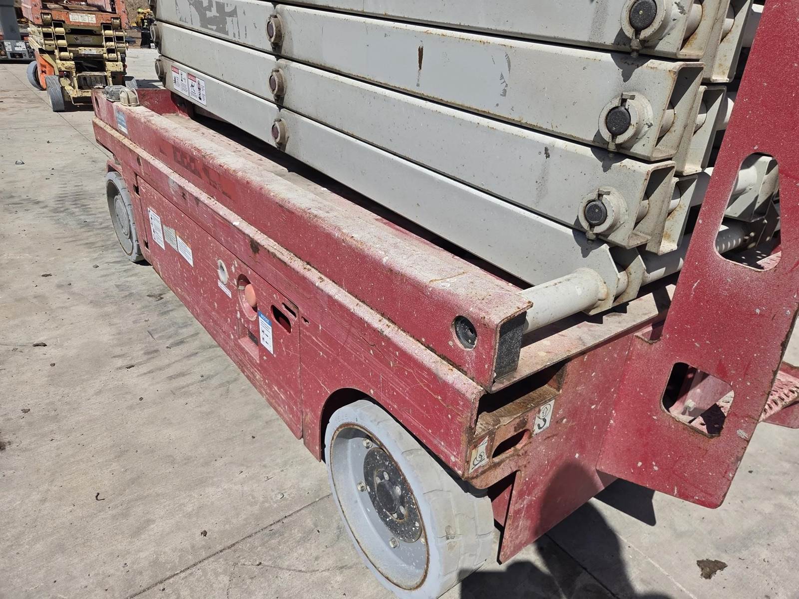 24V DC, Approx. 39' Max Height, 550LB Max Capacity, Approx. 88"x54" Platform, Approx. 54" Extension, Ground/Platform Controls, 15x5 Tires Available for inspection M-F 8 AM - 4 PM. Call Office 715-443-5000.