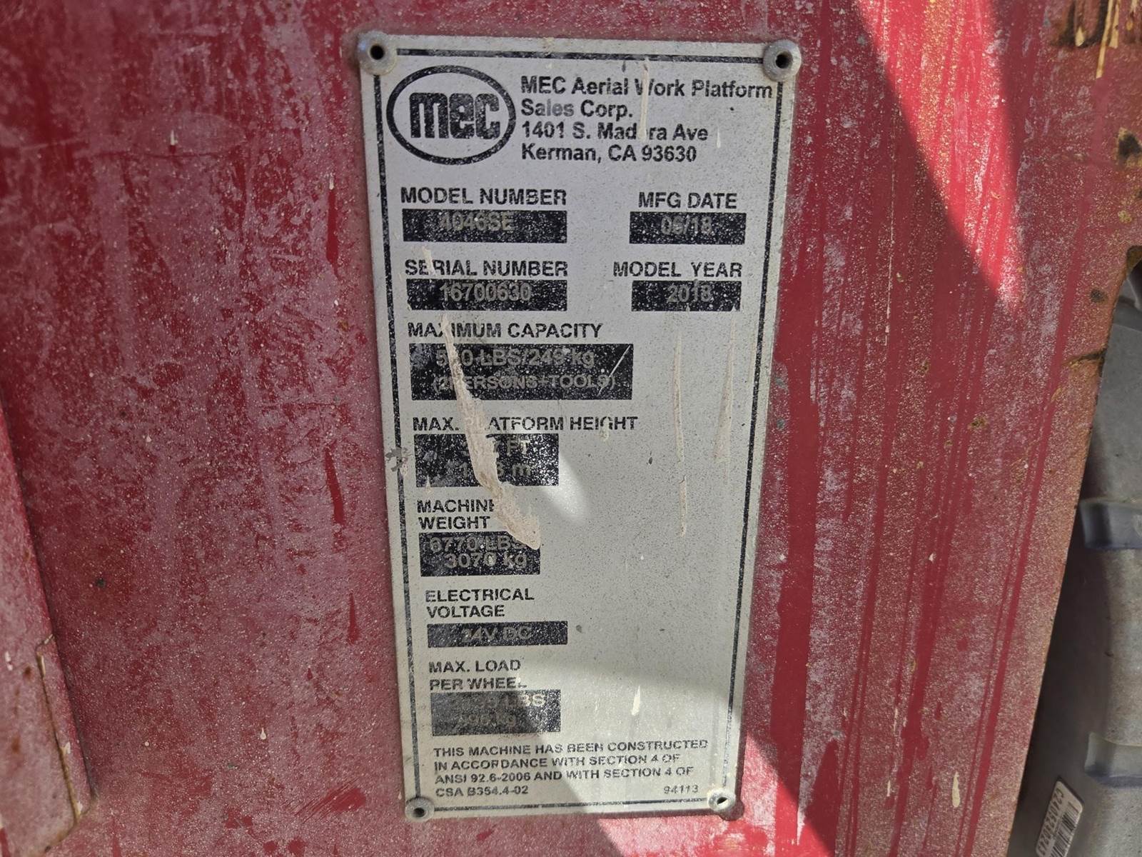 2018 MEC 4046SE Scissor Lift