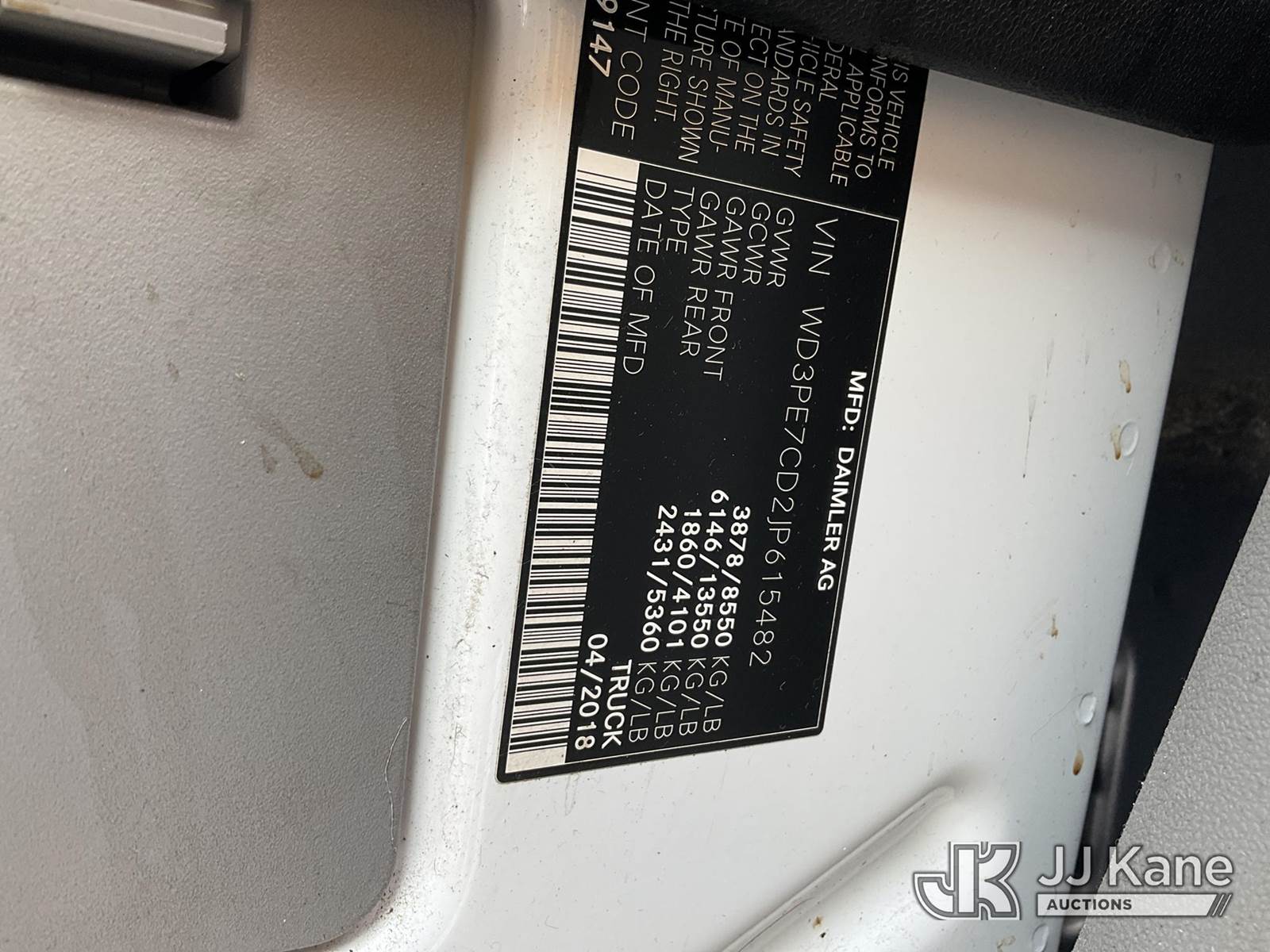 2018 Mercedes-Benz Sprinter Cargo Van, s/n WD3PE7CD2JP615482, 3.0L Turbo Diesel 7-Speed Automatic, A/C, (147,491 miles) (Runs & Moves) (Engine Light On, 147491 Miles, Tacoma Location) This is a Titled Item NOTE: This unit is being sold AS IS/WHERE IS via Timed Auction and is located in Tacoma, WA. Inspection & preview days for this unit are by appointment only; please contact us at contact@jjkane.com or 84-Go-JJKane for more details. (Buyer is responsible for removal. Assistance by consignor or JJ Kane Auctions is not assured.)